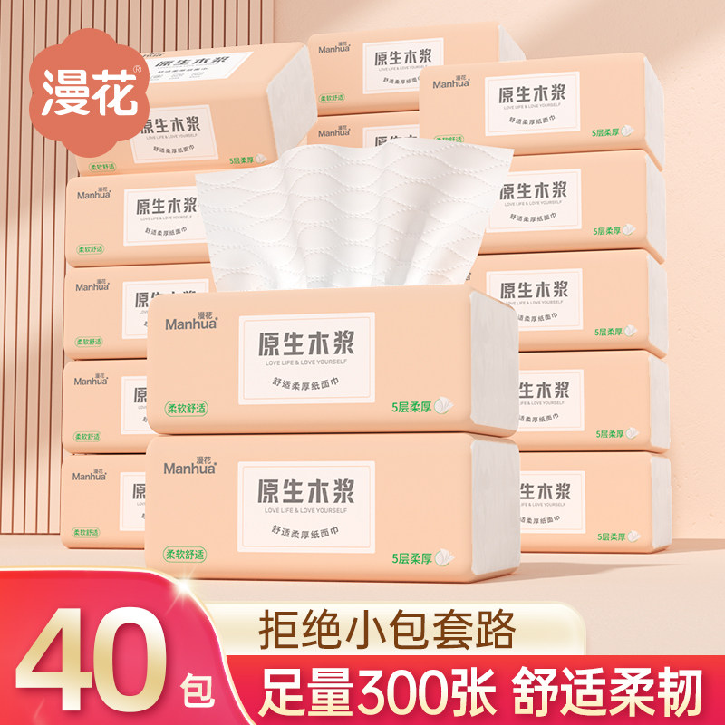 漫花40包抽纸整箱批小包餐巾纸家用实惠装卫生面巾纸抽原生木浆