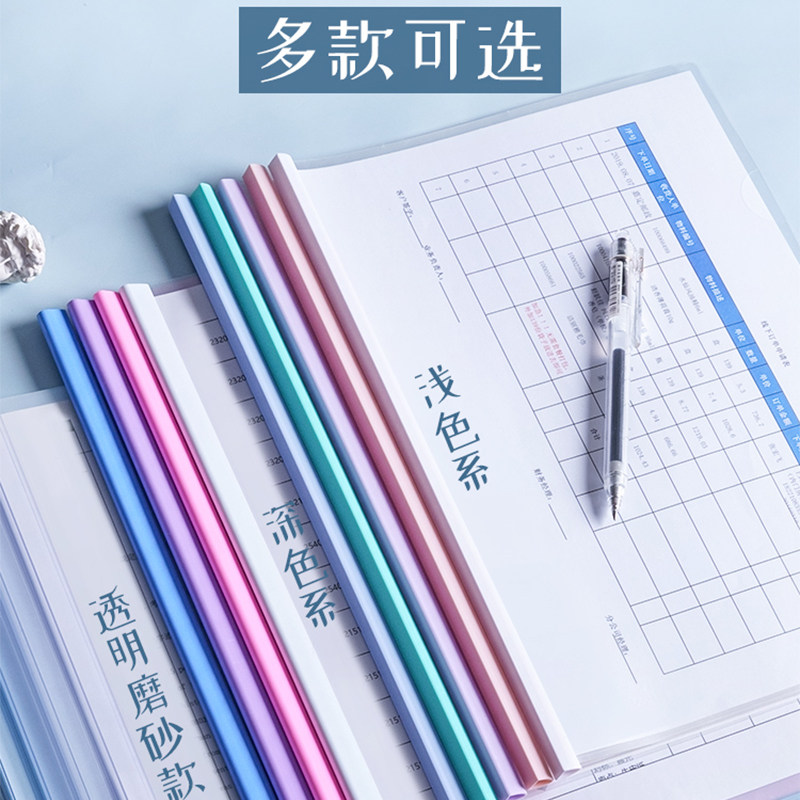 得力办公抽杆式报告夹学生用包书皮试卷资料夹子A4透明拉杆文件夹加厚抽杆夹水滴夹会议翻页拉杆夹大容量加厚
