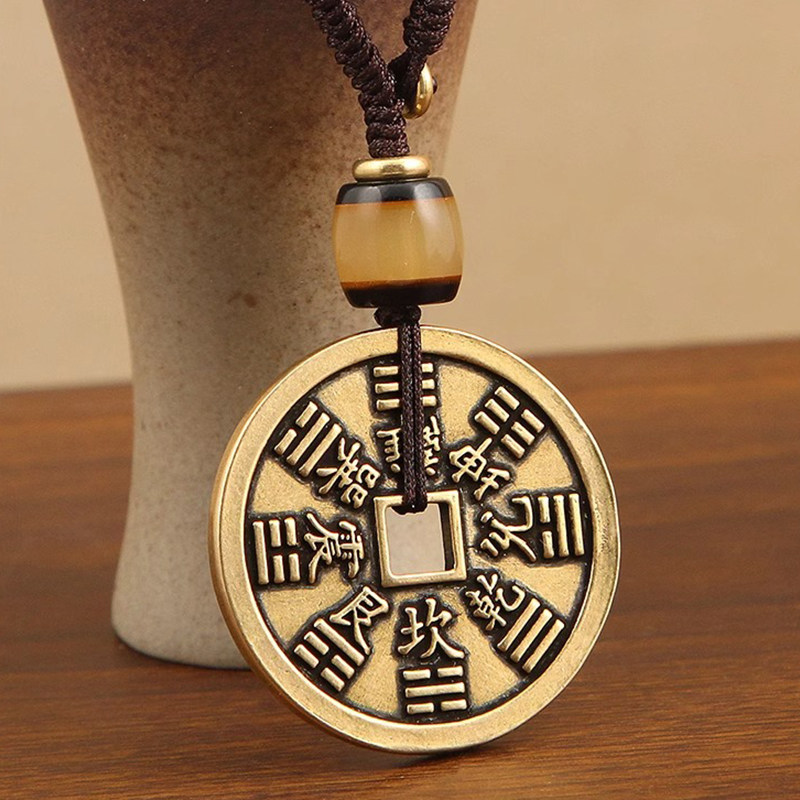 山鬼花钱道家纯黄铜僻邪龙虎山朱砂钥匙扣吊坠挂件护身符古钱币