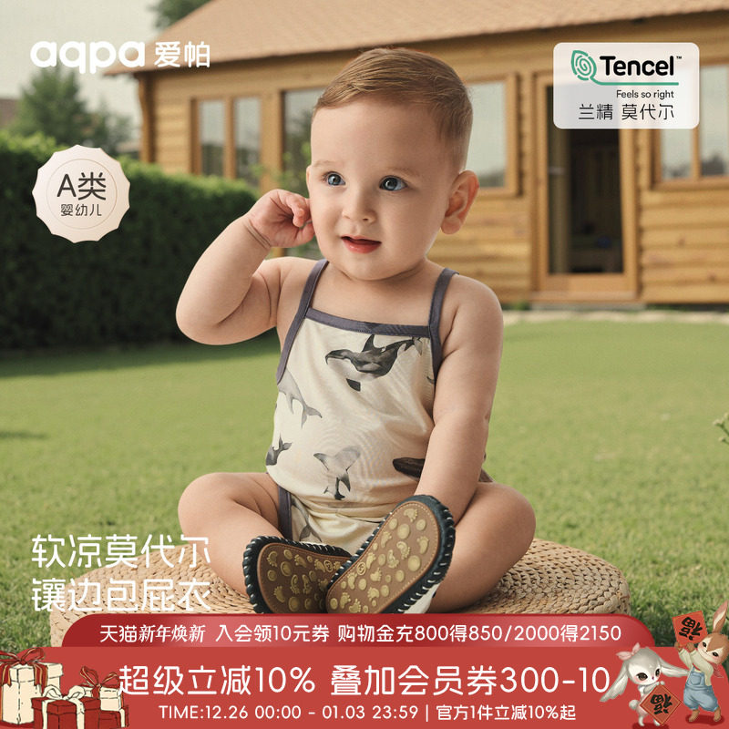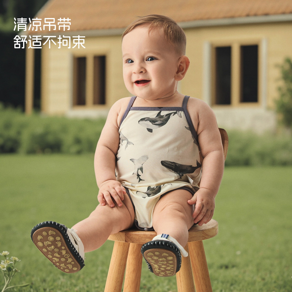 [砂海迷鲸]aqpa爱帕婴儿吊带包屁衣莫代尔夏季薄款宝宝连体衣哈衣