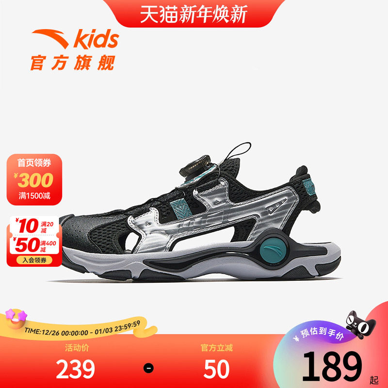 安踏儿童男大童沙滩鞋2025夏季新款透气防滑耐磨中大童包头凉鞋潮