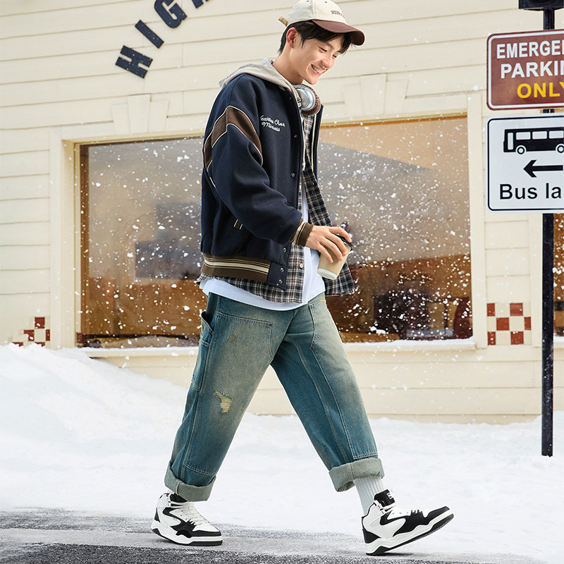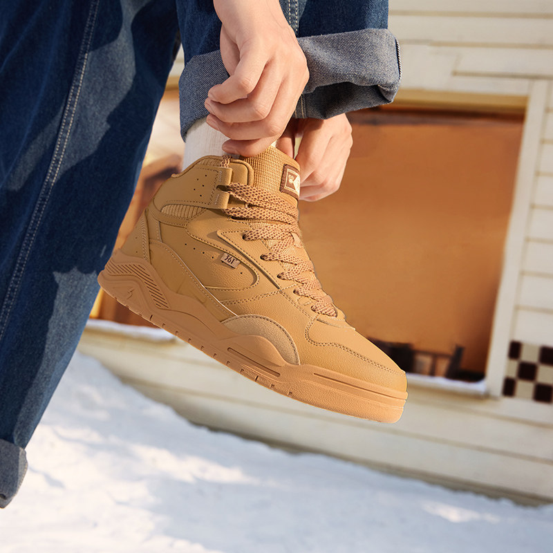 361型燃4运动鞋男鞋2025冬季新款高帮加绒板鞋保暖皮面雪地棉鞋女