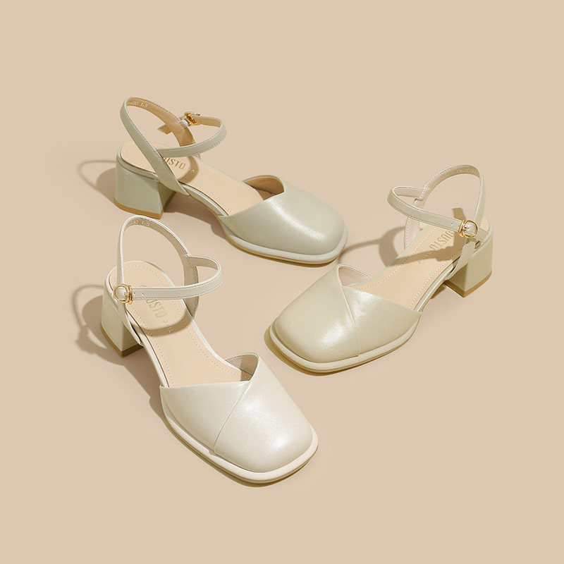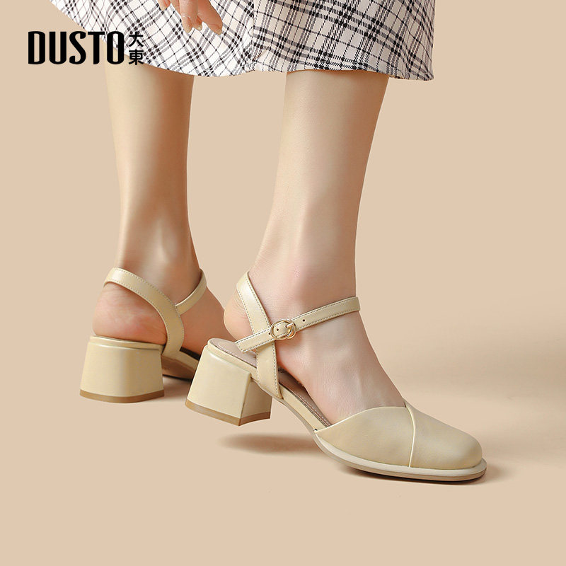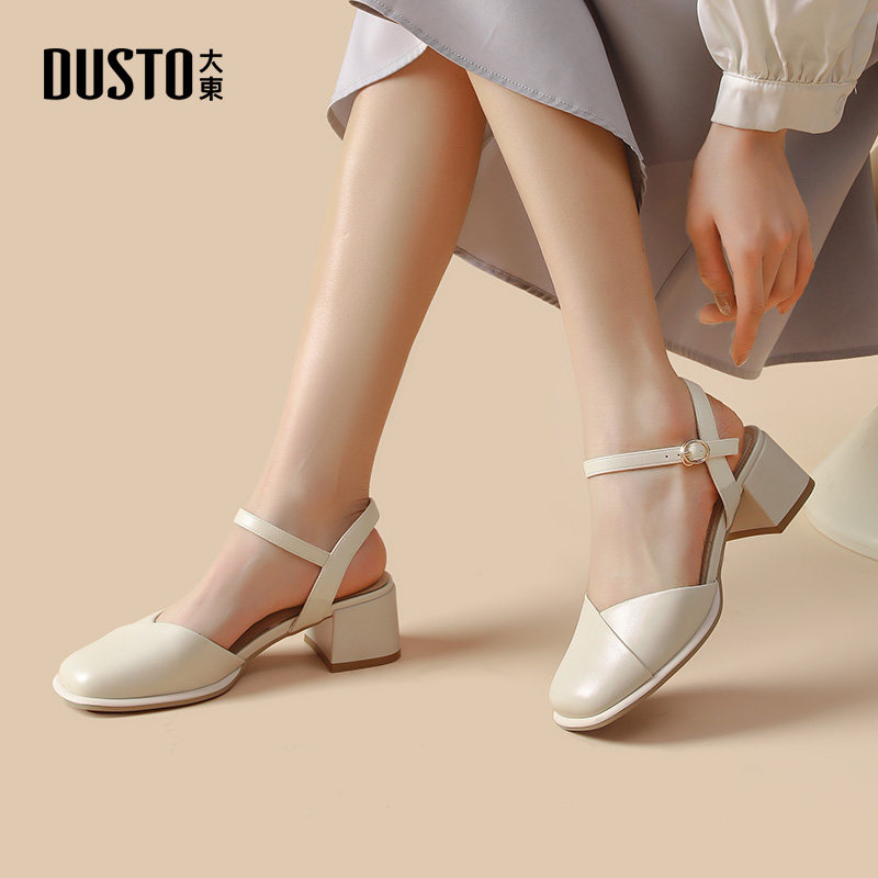 大东后空凉鞋女鞋2025秋季新款简约优雅粗跟高跟方头一字扣0600