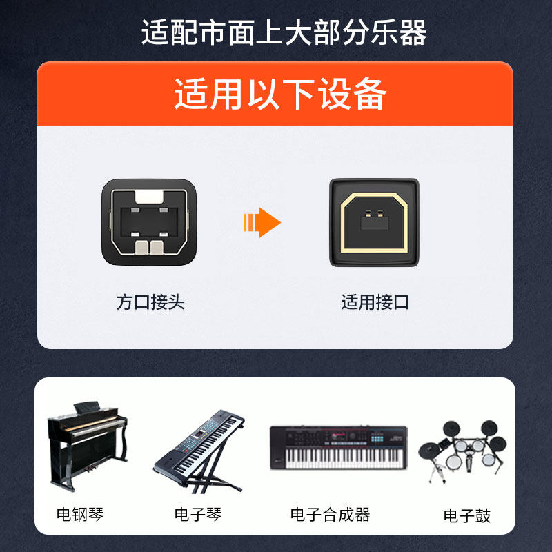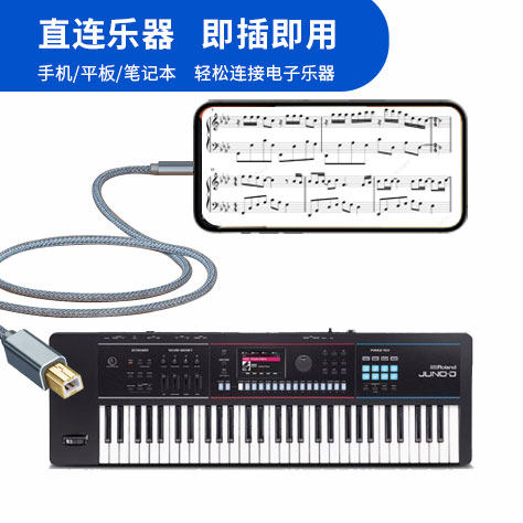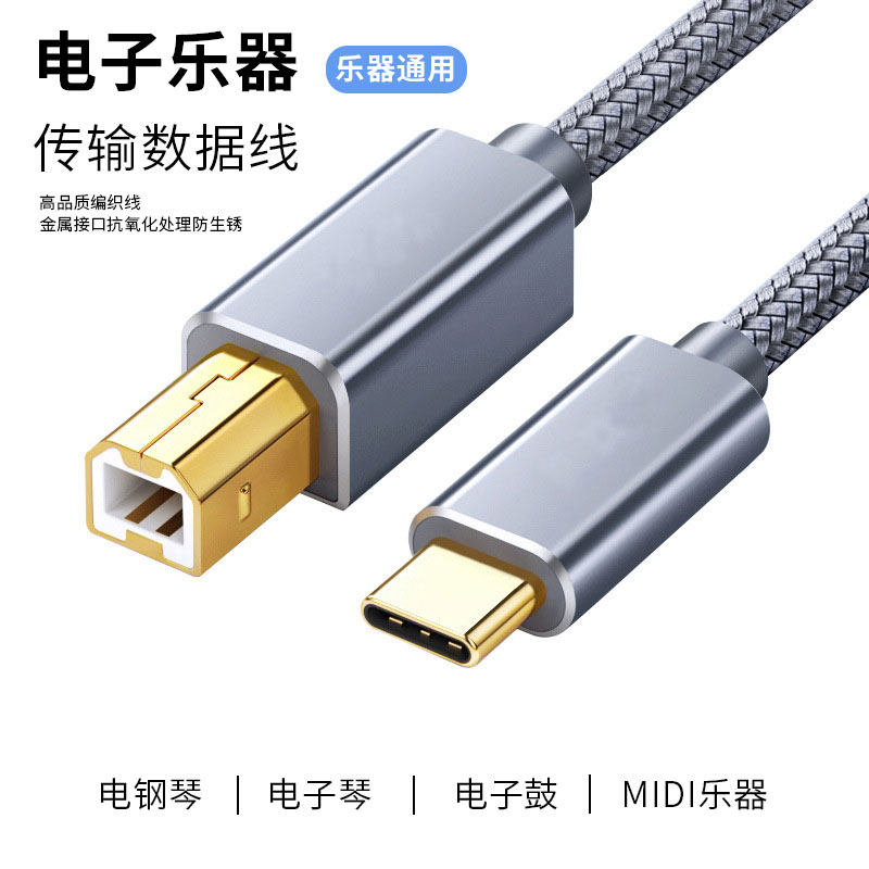 Type-C安卓手机打印机连接线 MIDI转方口内录线适用手机平板电脑接电钢琴解码器电子鼓电子琴混合器OTG数据线