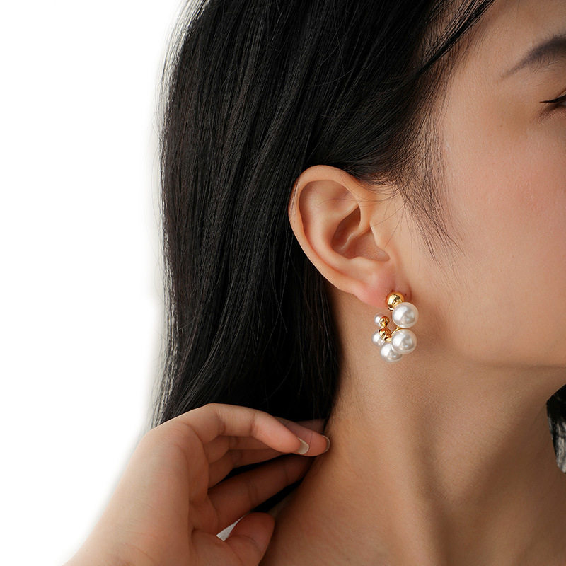 【SU039】青岛饰品法式新款复古珍珠耳环银针气质简约时尚精致设