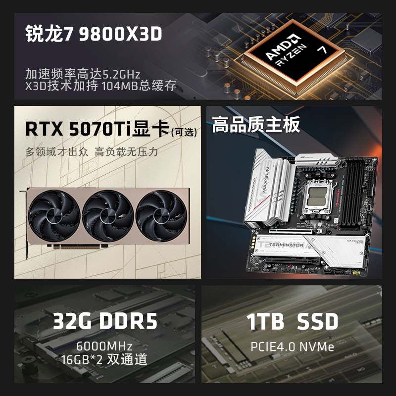 【12期免息+国补】AMD锐龙R7 9800X3D/9600X RTX5060/5070Ti DIY整机乔思伯Z20便携游戏设计台式电脑手提主机