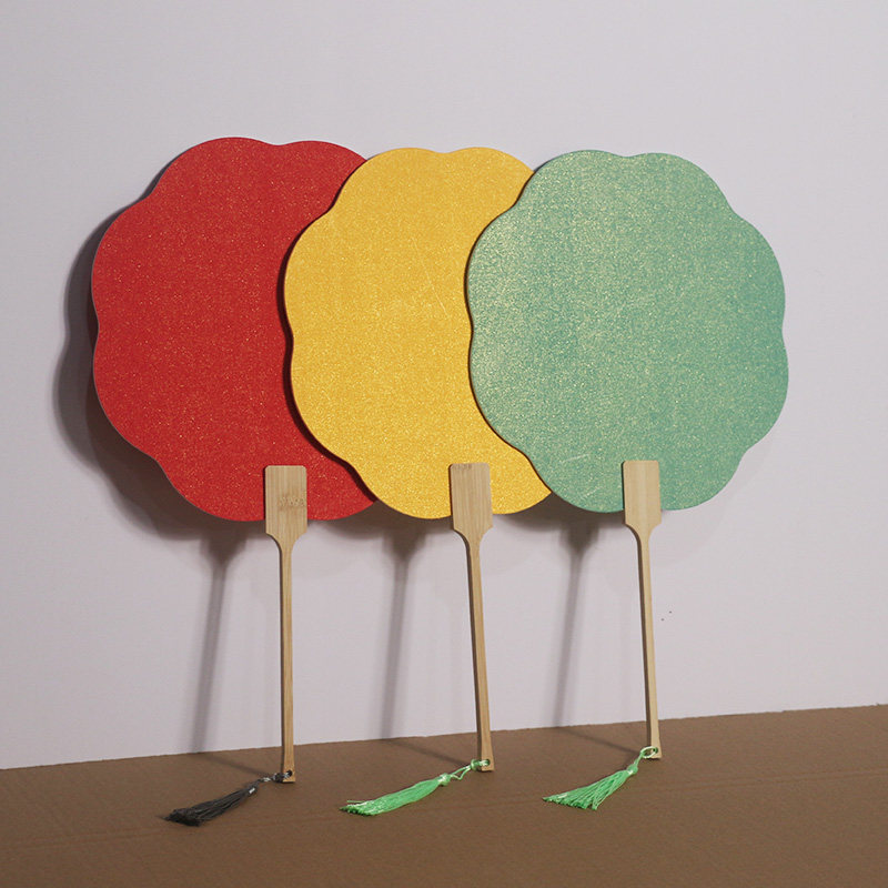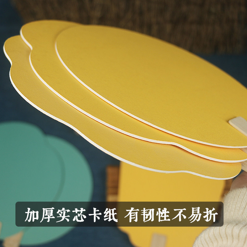 加厚鎏金宣团扇纸双面手绘空白卡纸扇书法绘画漆扇工艺品扇楠竹长柄扇子pvc材质支持打印定制批发书画纸团扇