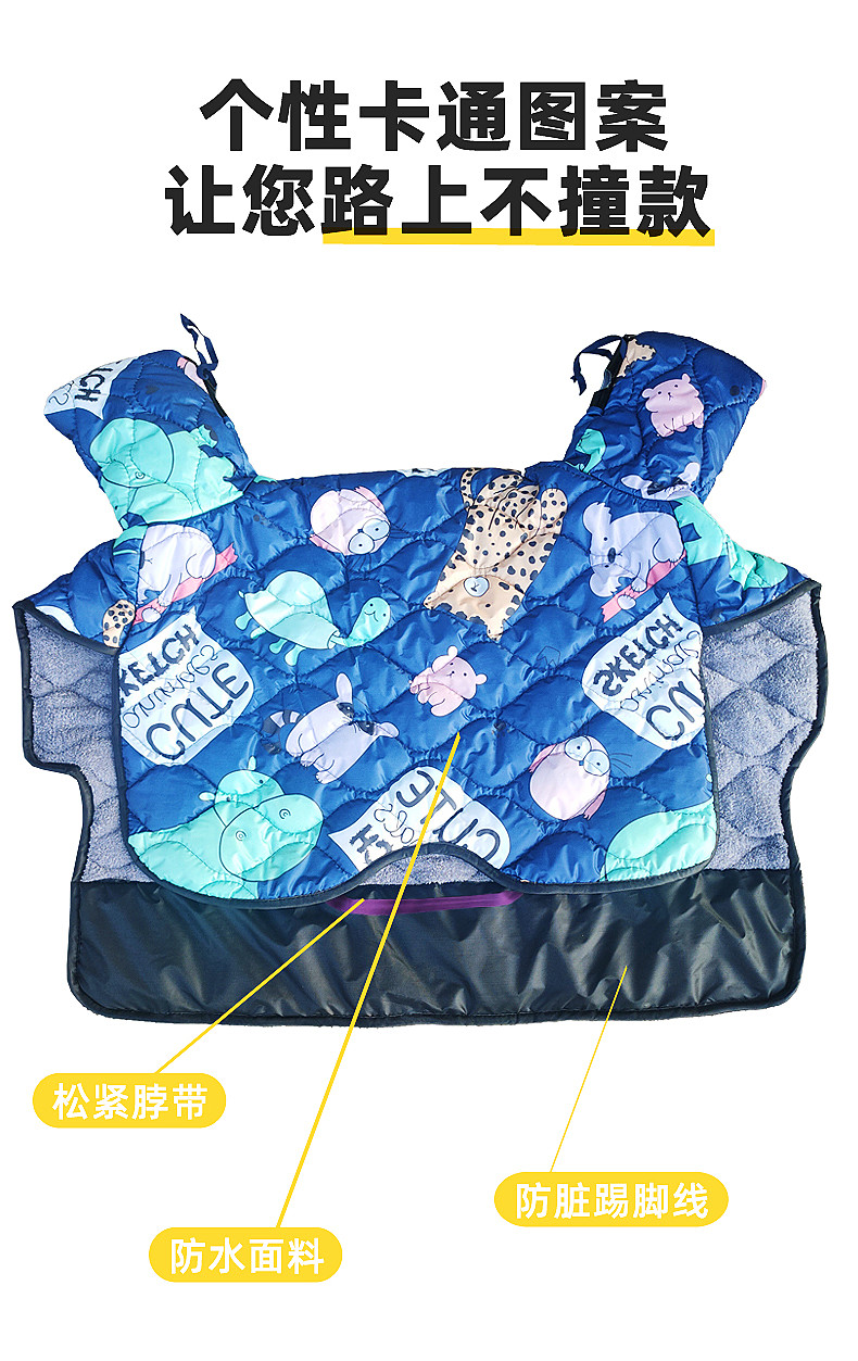 冬季电动摩托车挡风被卡通加绒保暖防寒防风罩侧翼春秋款双面防水