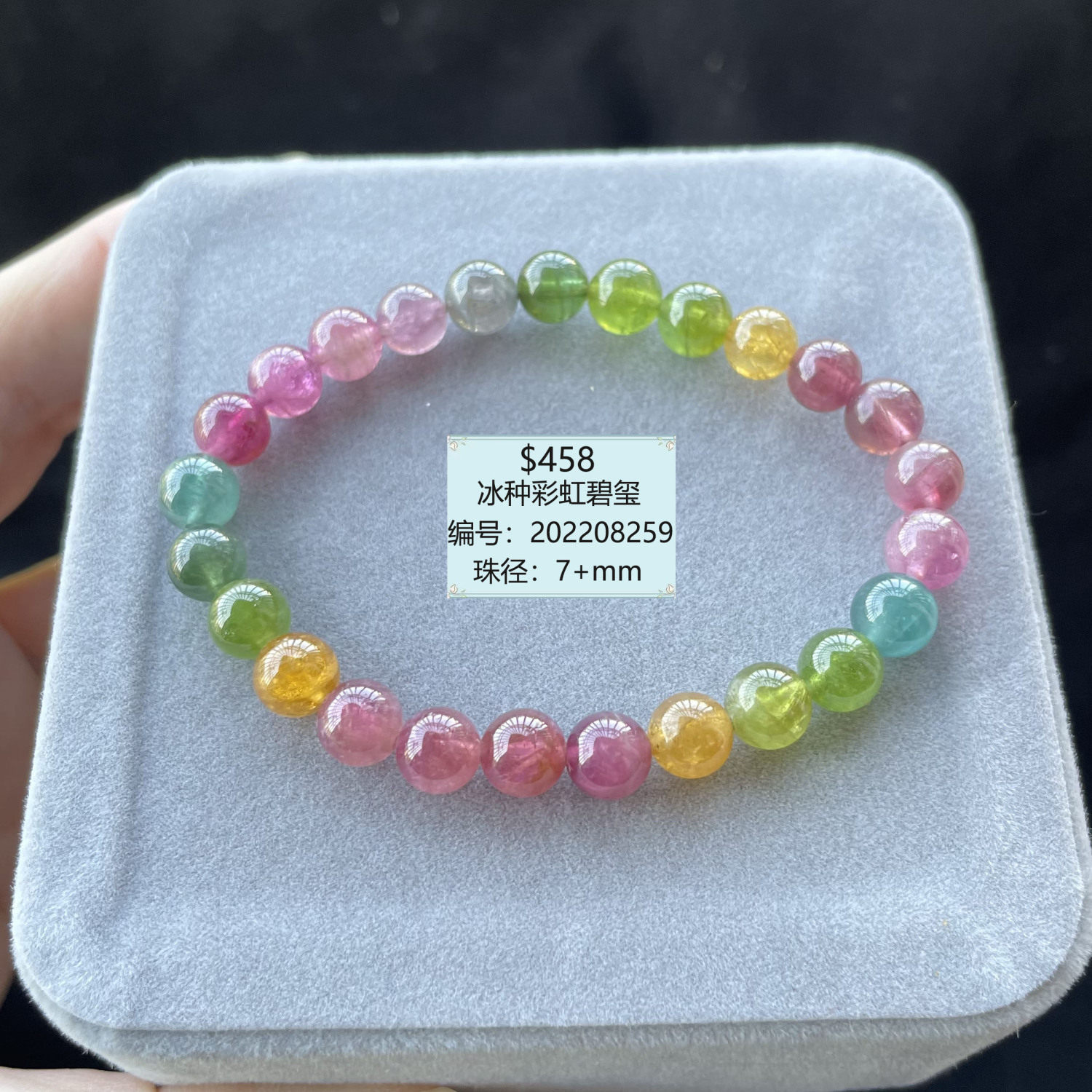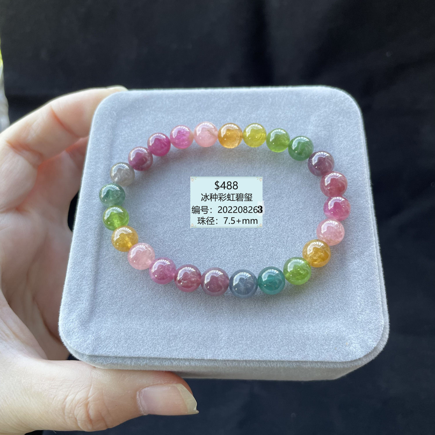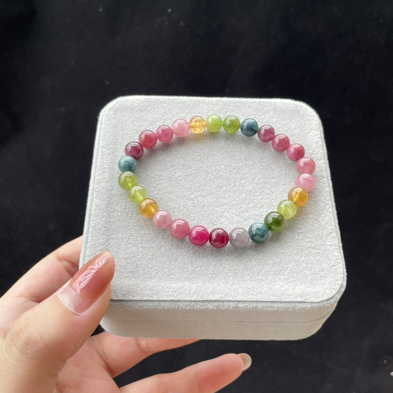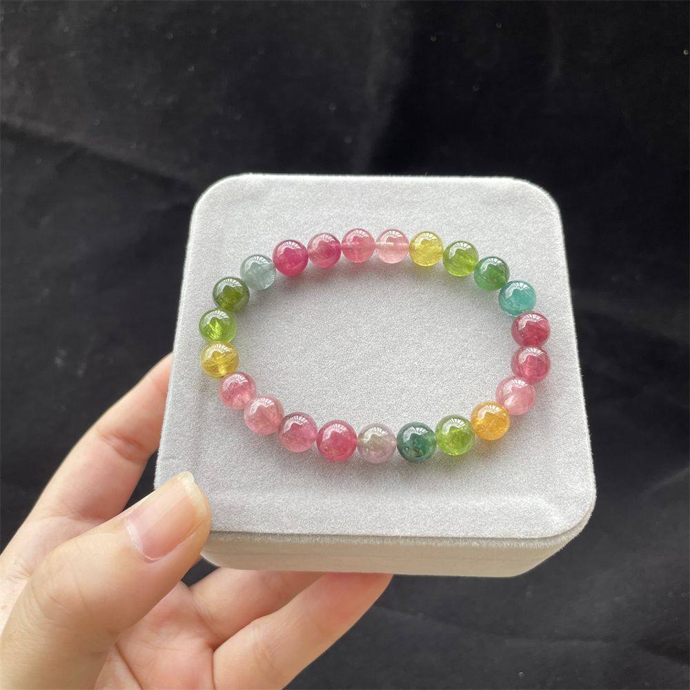 马卡龙碧玺手链玻璃体冰种七彩碧玺手串高档巴西彩色宝石
