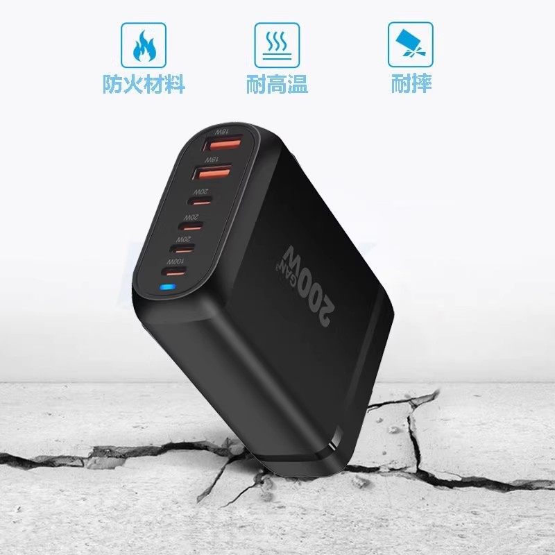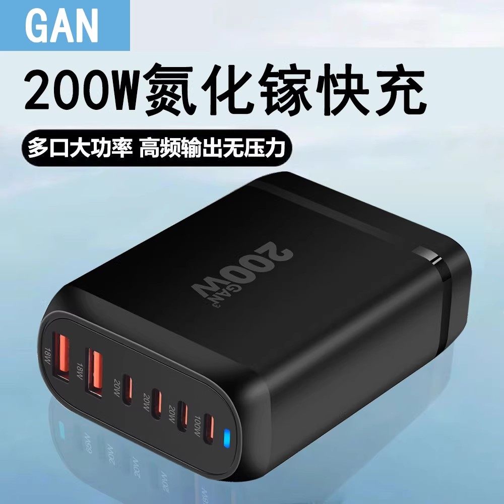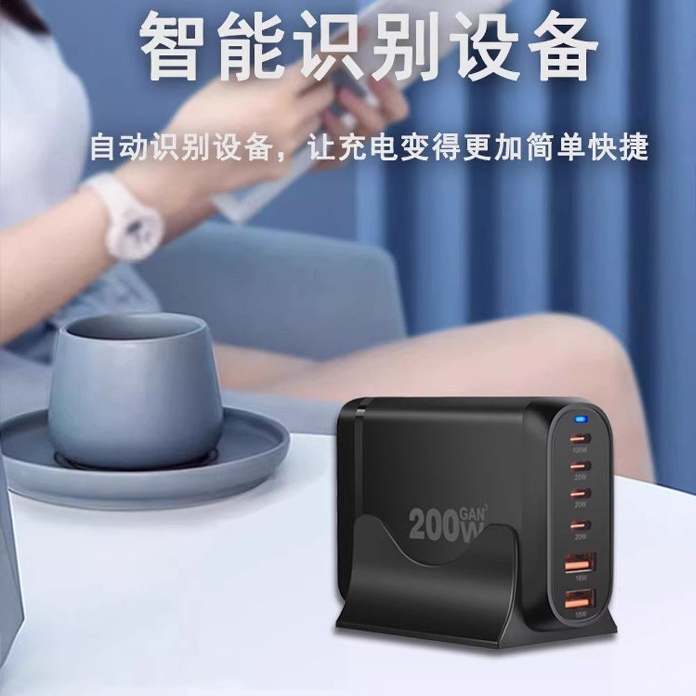 桌面充电站多口USB插头氮化镓充电器200W大功率PD快充65W笔记本电脑充电坞100W多孔闪充120W工作室排插座