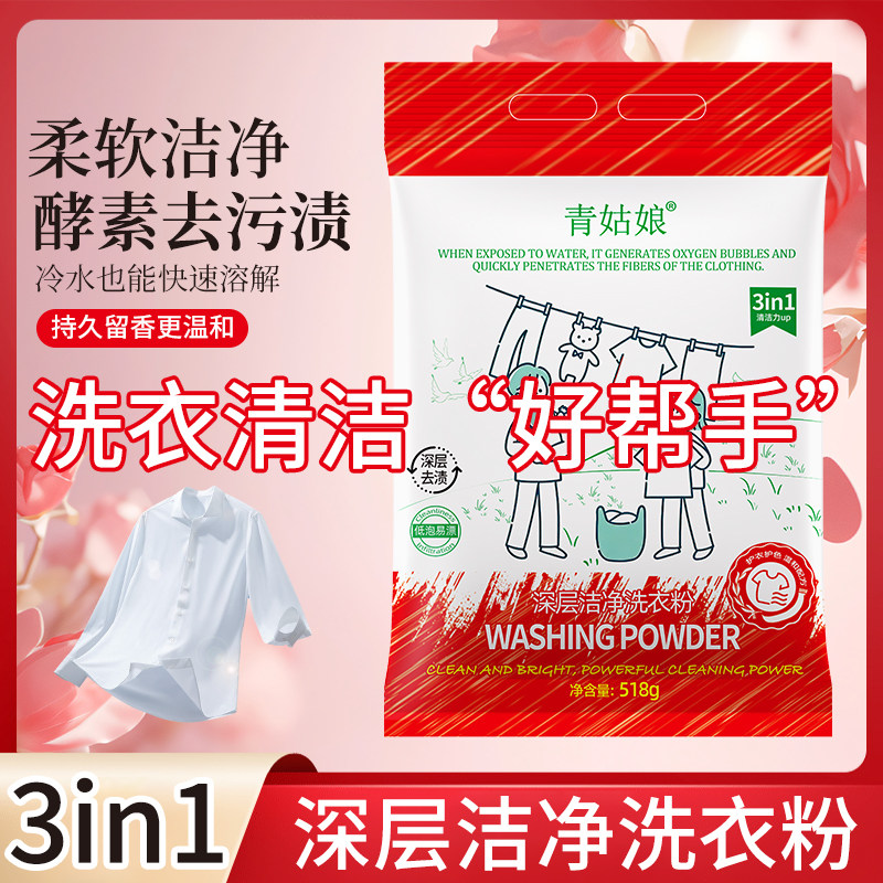 顽渍洁净洗衣粉免手搓去污渍除菌除螨3倍洁净去渍家用去污渍留香