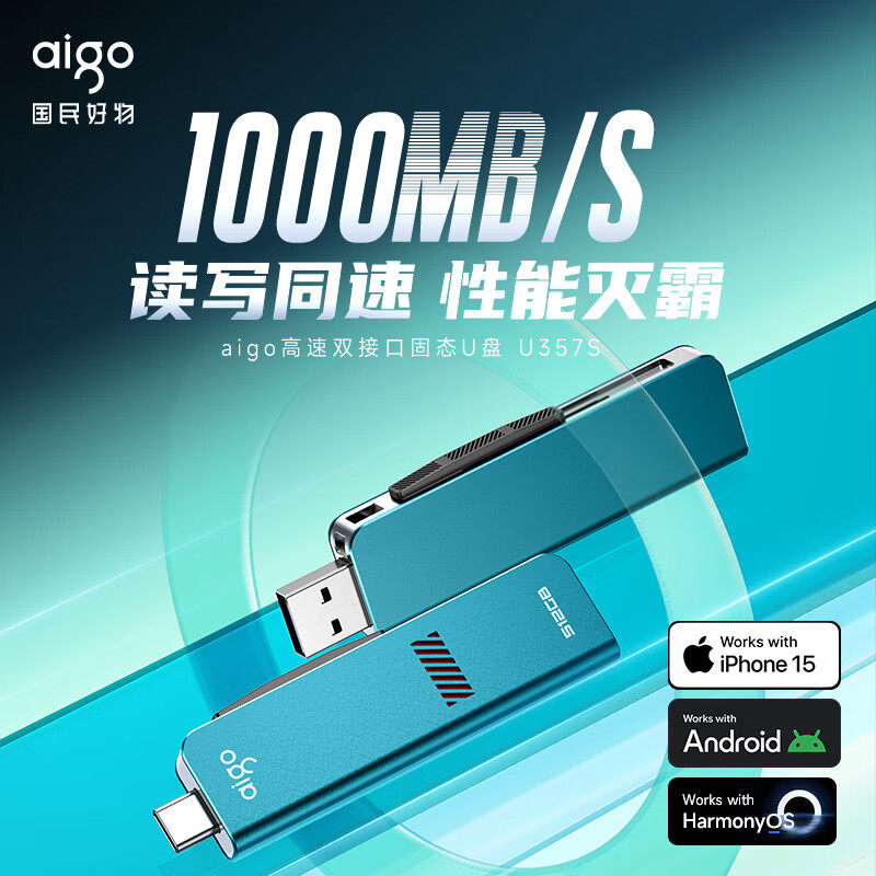 爱国者千兆固态u盘大容量1t高速typec手机电脑两用优盘双接口正品
