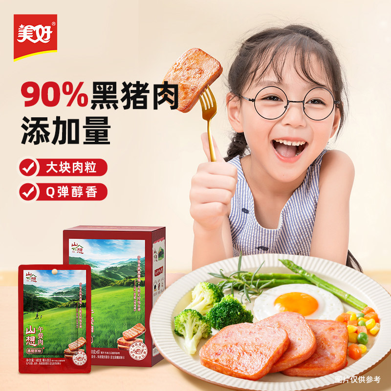 美好山想黑猪午餐肉240g即食速食火腿肉片罐头独立包装零食猪肉