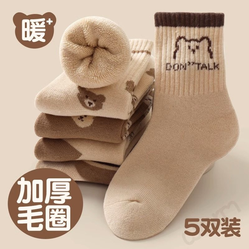 儿童袜子秋冬男童棉袜冬款加绒加厚保暖毛圈袜婴儿宝宝冬季厚中筒