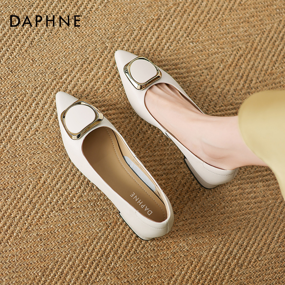 达芙妮尖头单鞋女2026新款气质通勤女士小皮鞋粗跟职业高跟鞋女鞋