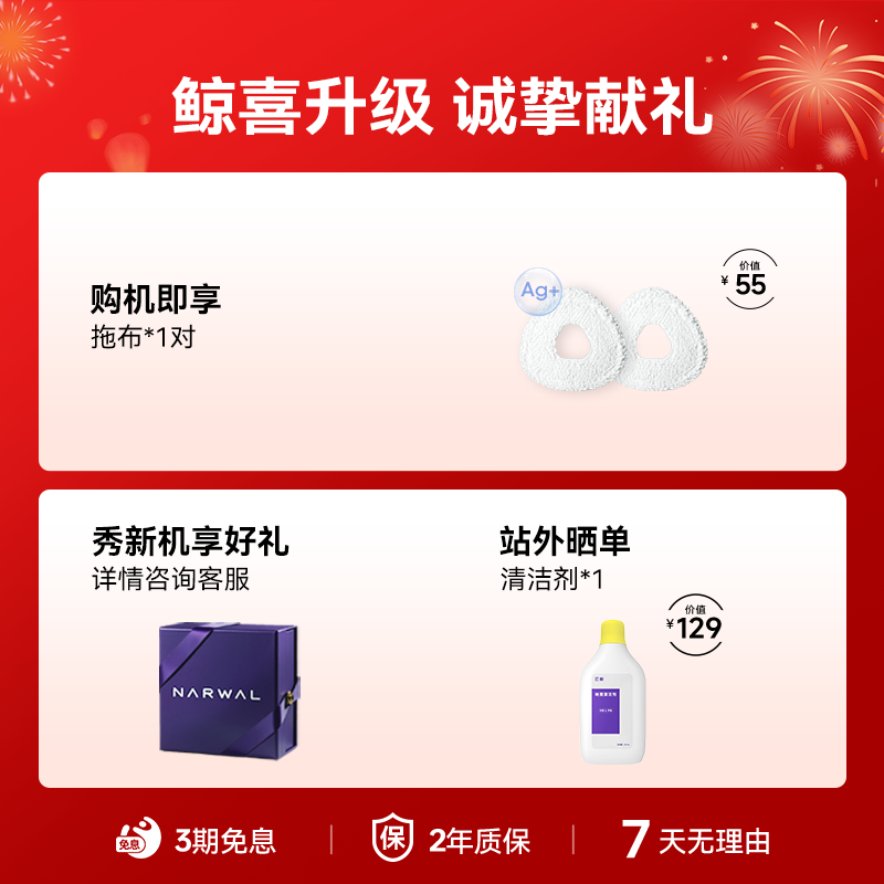 【年货节】云鲸J5Pure智能洗扫拖一体扫地机器人毛发0缠绕自清洁