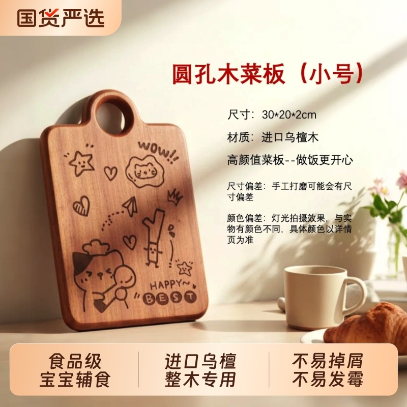 宝宝辅食乌檀木菜板抗菌防霉家用辅食砧板木质案板水果粘切菜板