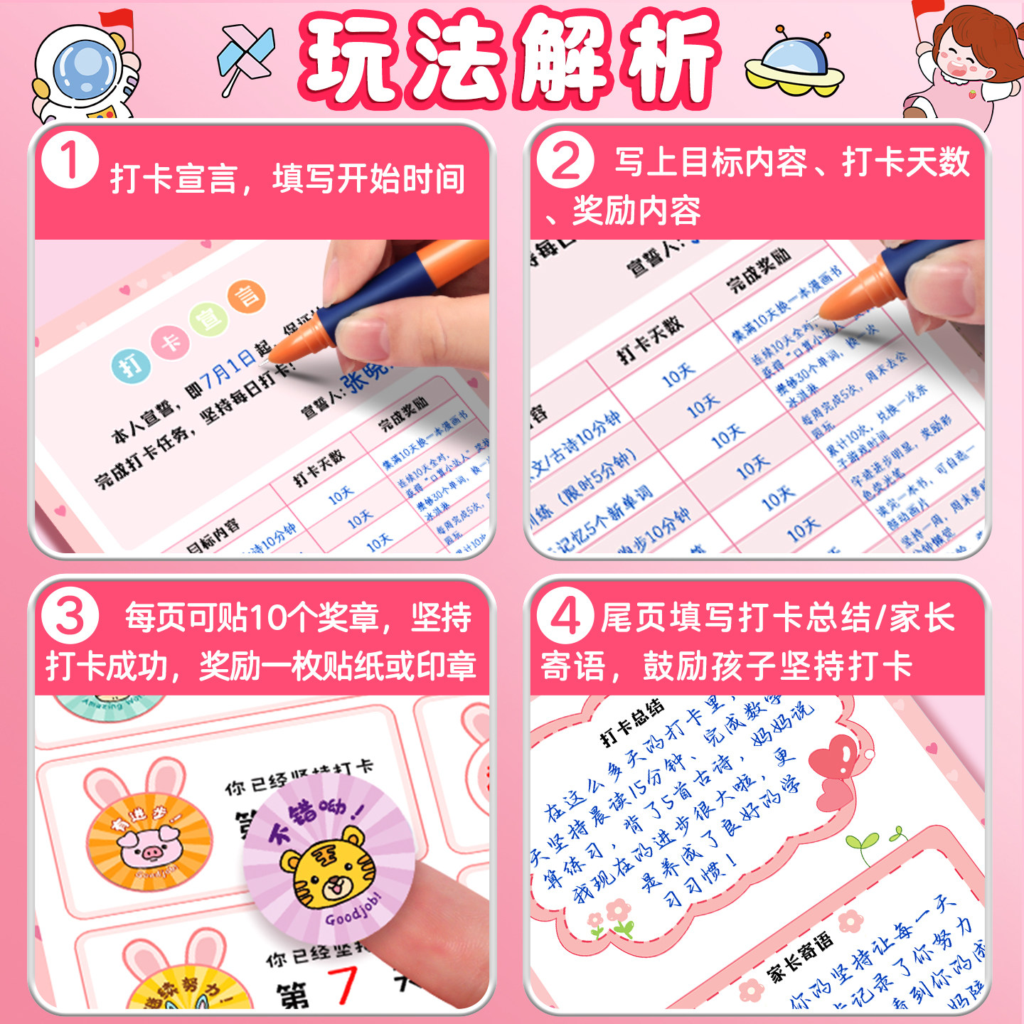 自律打卡本学生假期时间管理打卡本幼儿园儿童奖励贴纸收集册阅读打卡积分记录奖励本小红花收集本积分存折