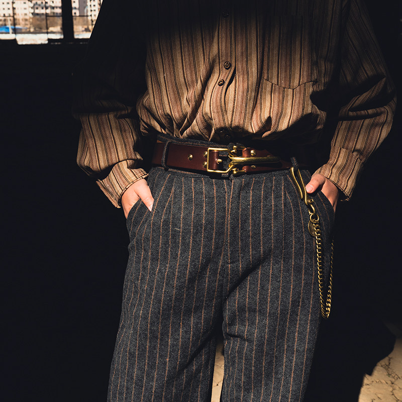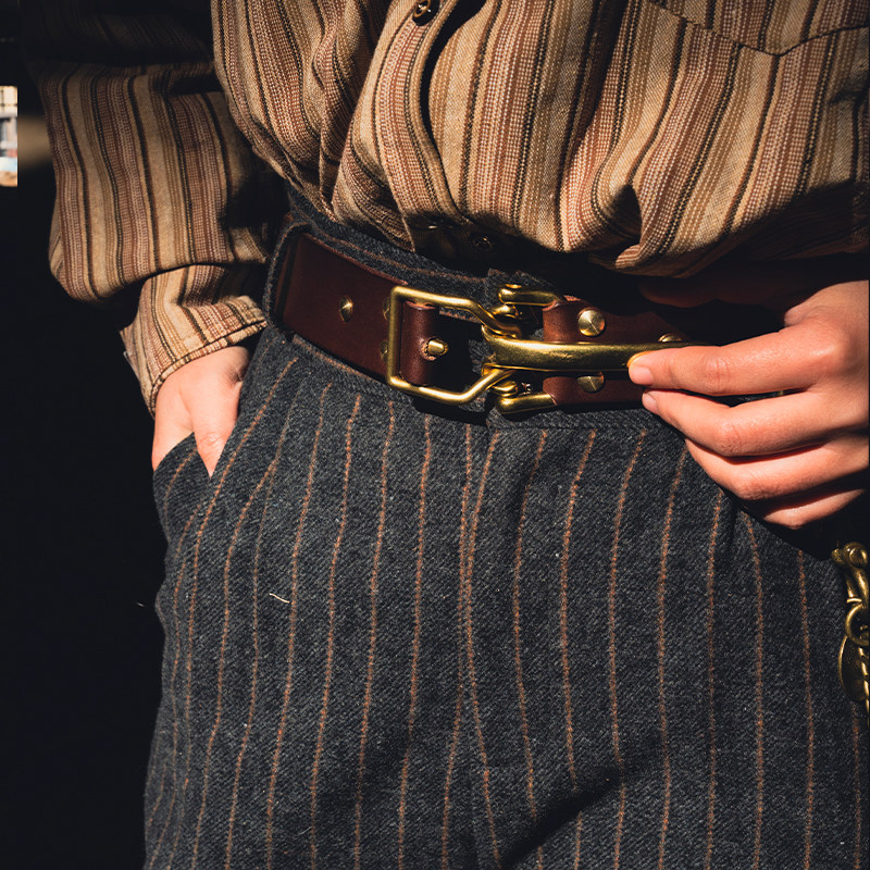 美式阿美咔叽骑兵腰带纯铜扣vintage复古皮带意大利植鞣头层牛皮