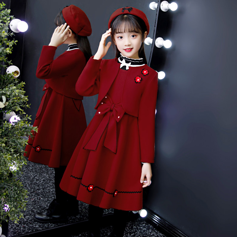 [保暖加厚]连衣裙女童红色小香风背心裙子大童深秋宝宝秋冬衣服