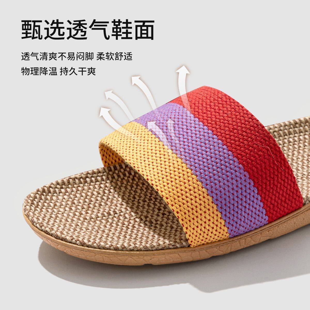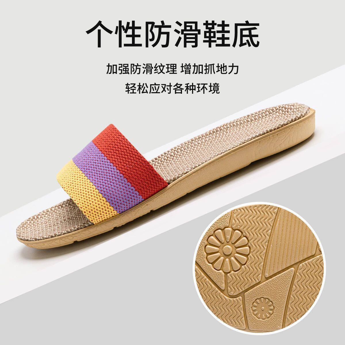 洁丽雅亚麻拖鞋男四季室内家居家用吸汗耐磨防滑春秋棉麻布女士春