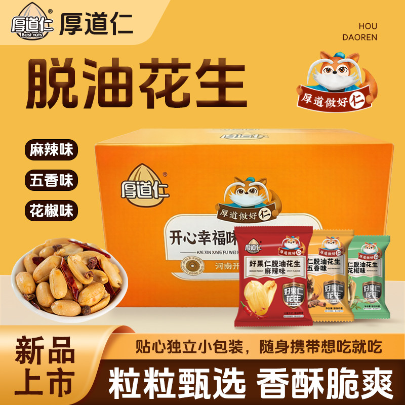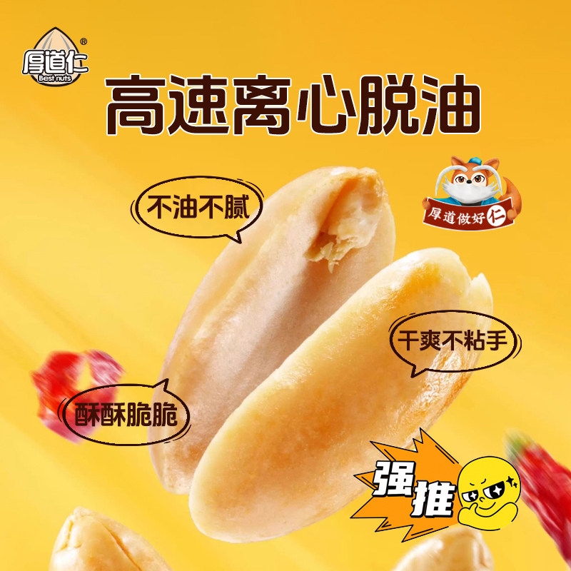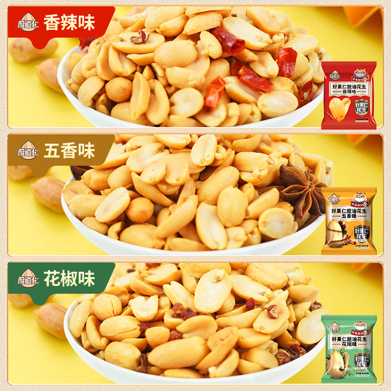 厚道仁脱油花生米好休闲小吃零食品花椒味下酒菜脱皮花生豆小包装