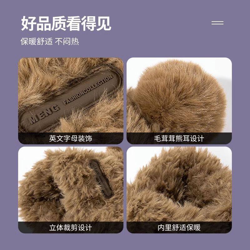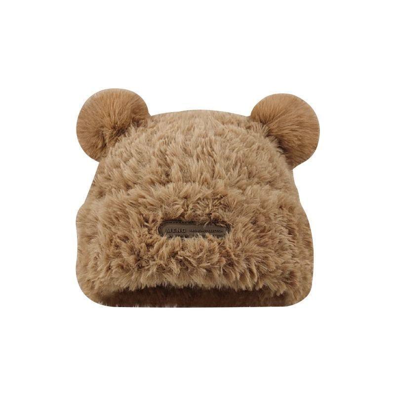 可爱小熊耳朵女毛线帽秋冬季毛绒帽子保暖骑车冬天针织大头围防风