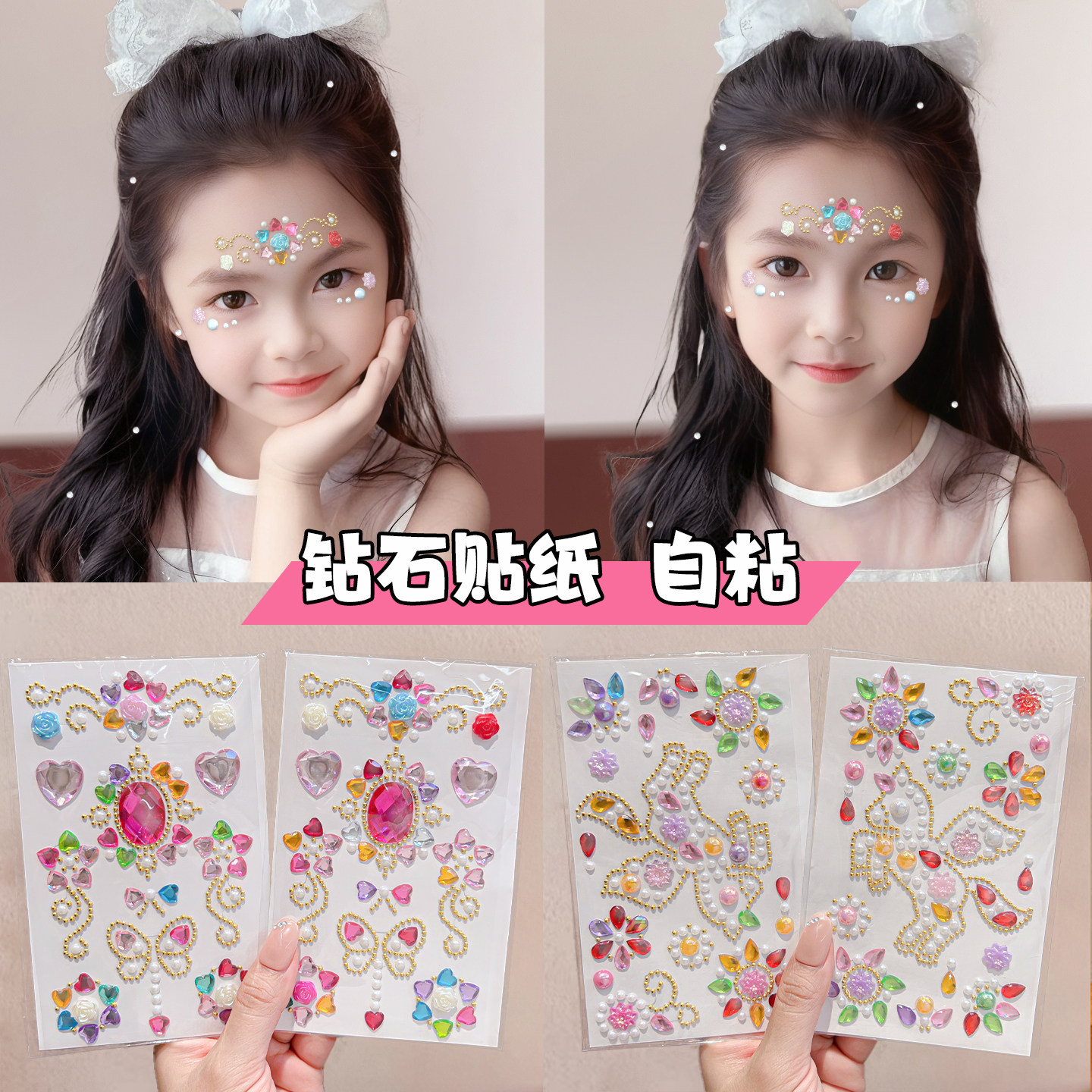 儿童舞台妆表演小马钻石贴纸公主水晶彩钻贴脸上贴宝宝女童装饰自粘贴画写真玩具节日表演眉心贴脸上钻石贴画