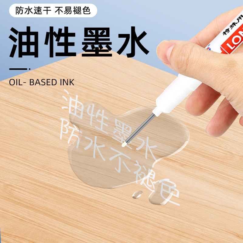 白色记号笔长头防水防油不掉色细头工地专用划线标记笔油性速干瓷砖画线木工深色板材特殊用途深孔长嘴可擦
