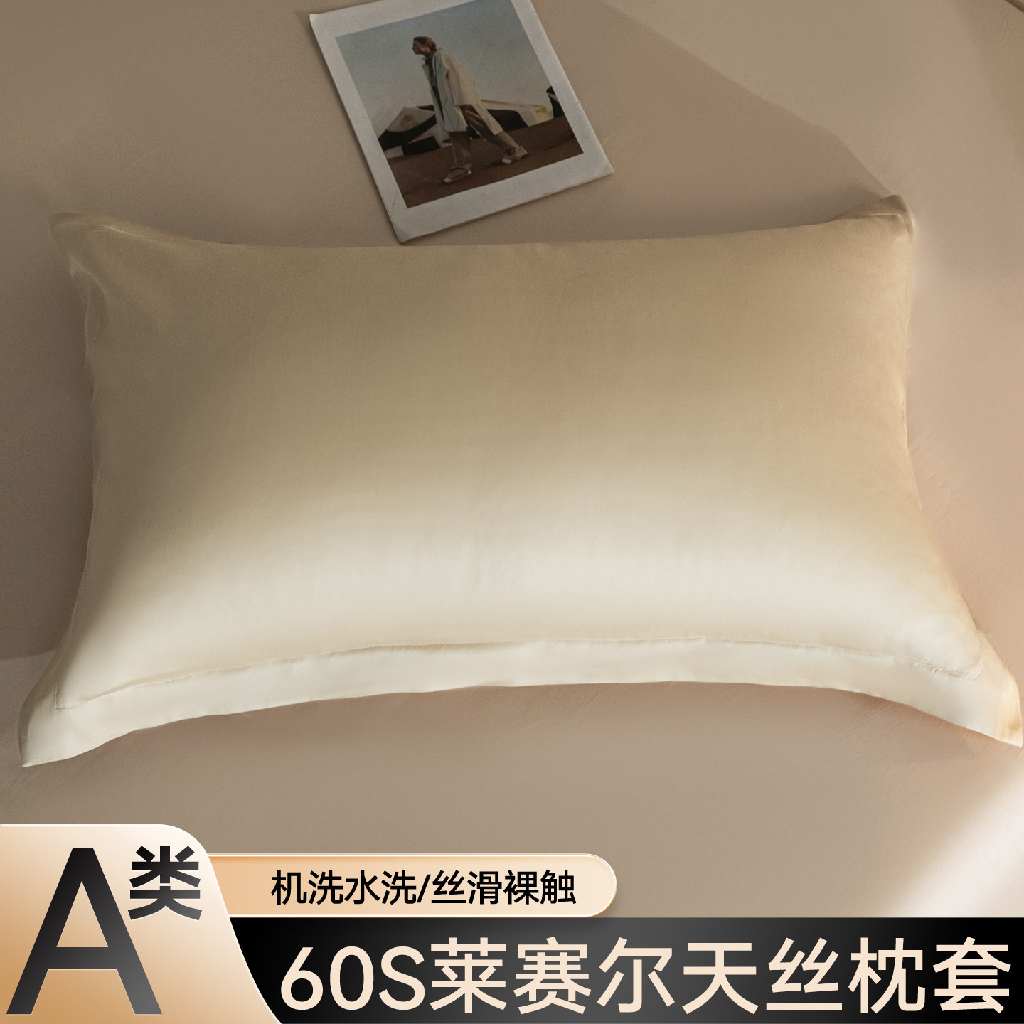 花花公子天丝枕套夏季A类冰丝枕头套单人48x74cm凉感枕芯内胆套