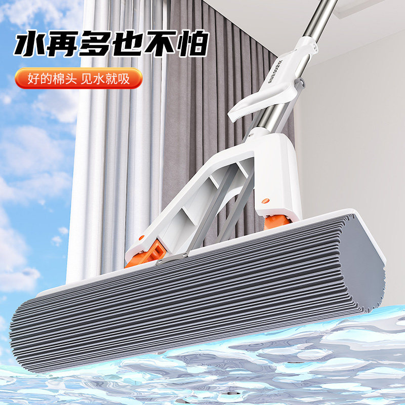 海绵拖把免手洗2025新款一拖家用吸水地拖神器净墩布胶棉头对折式
