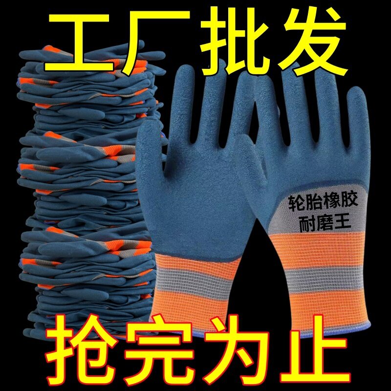 手套劳保手套乳胶橡胶手套工作劳保防滑防水耐磨胶皮手套工地干活