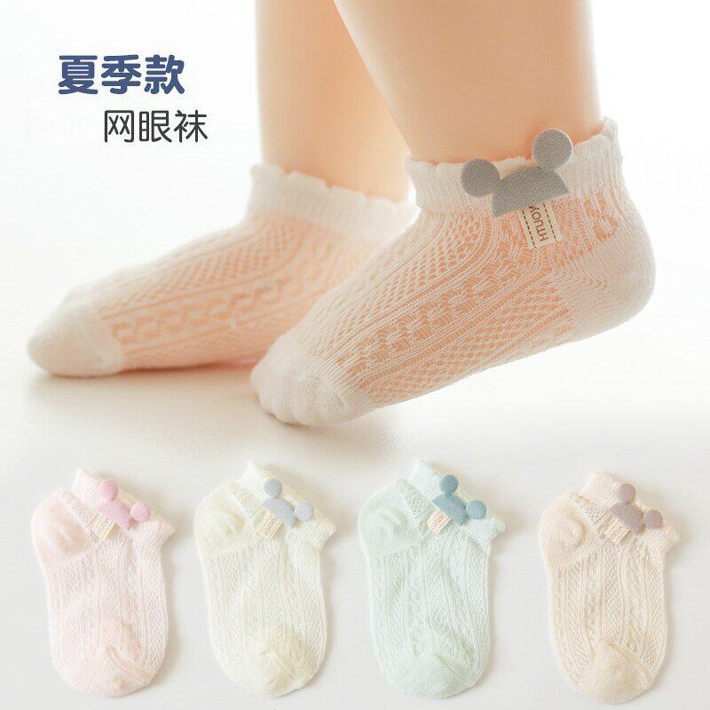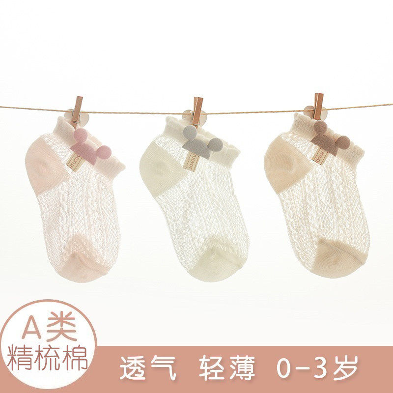婴儿袜子夏季超薄款新生儿宝宝0一3月棉袜网眼透气水晶丝袜松口短