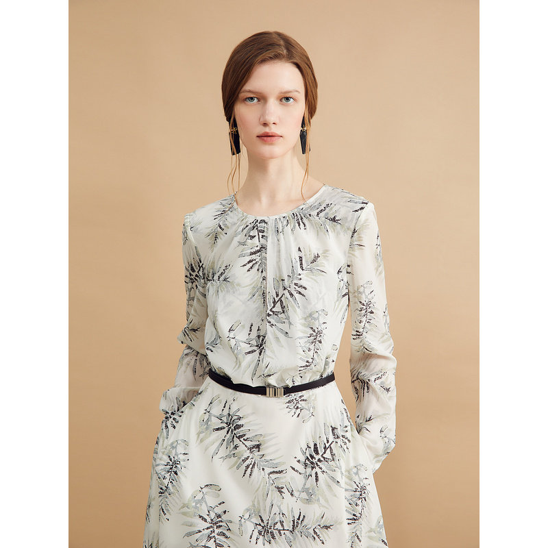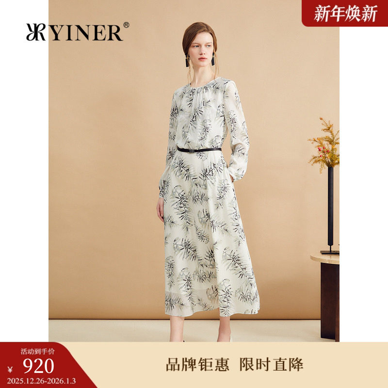 【真丝系列】YINER音儿秋季法式高级感艺术印花弹力桑蚕丝连衣裙