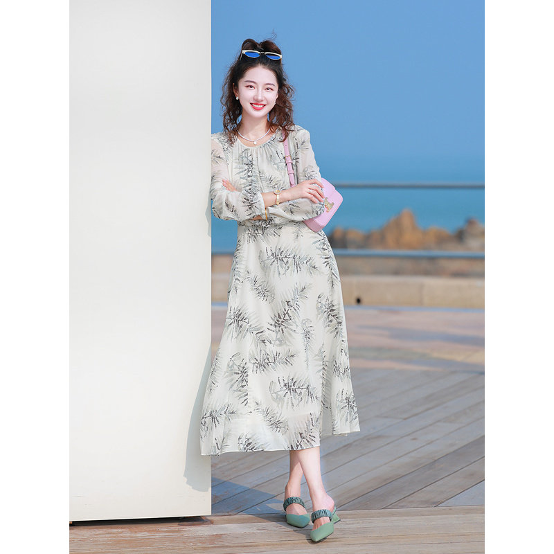 2025年新款春秋冬大摆连衣裙收腰显瘦旅游度假长裙雪纺裙沙滩裙子