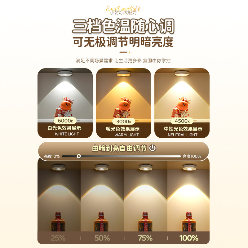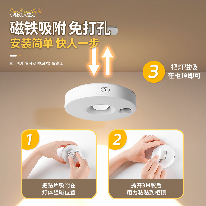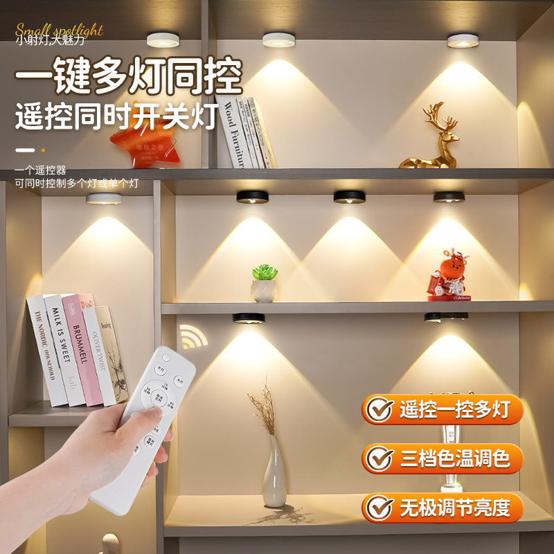 充电遥控小射灯自粘感应无线山丘酒柜灯展示柜手办灯led灯磁吸灯