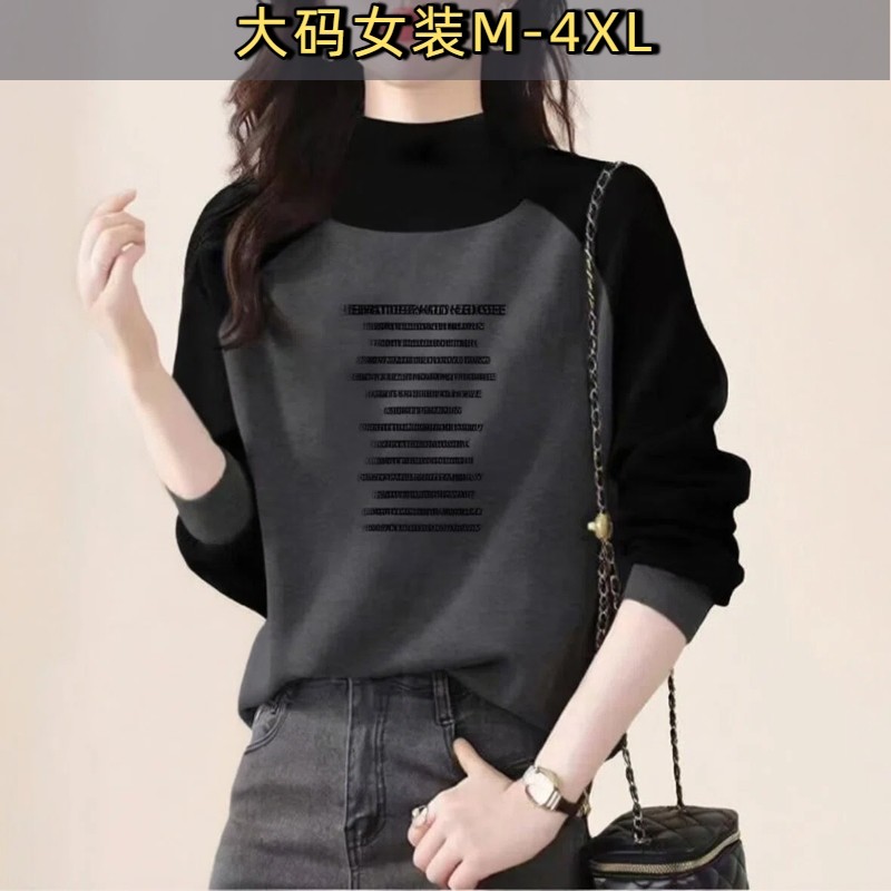 半高领德绒长袖秋冬季新款拼接大码百搭显瘦撞色打底衫上衣T恤女D