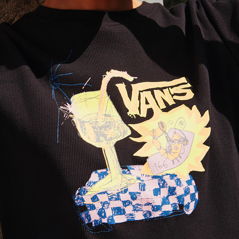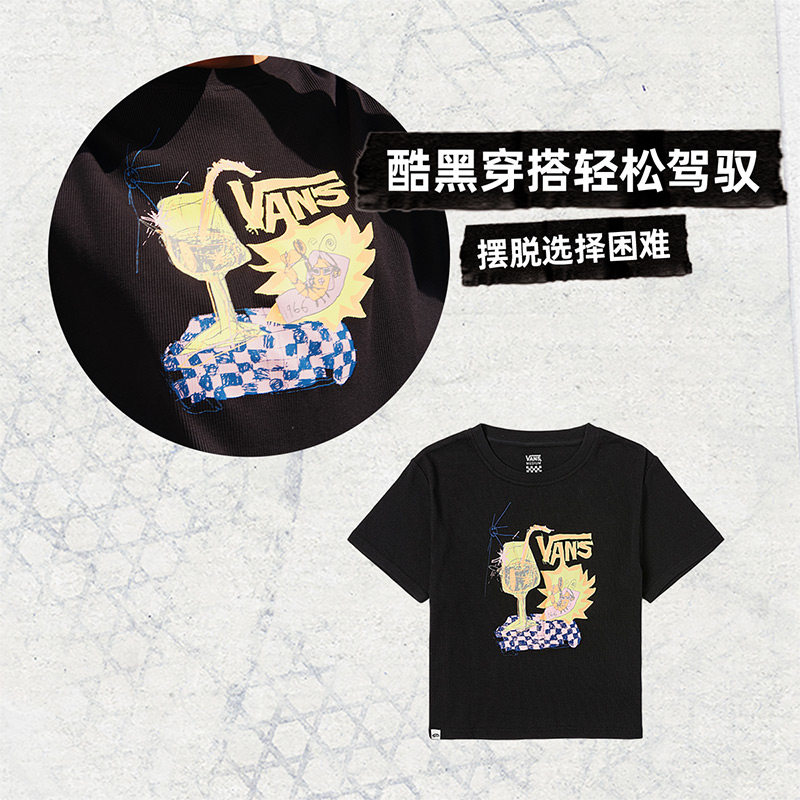 Vans范斯官方 女子纯棉黑色短袖T恤趣味印花