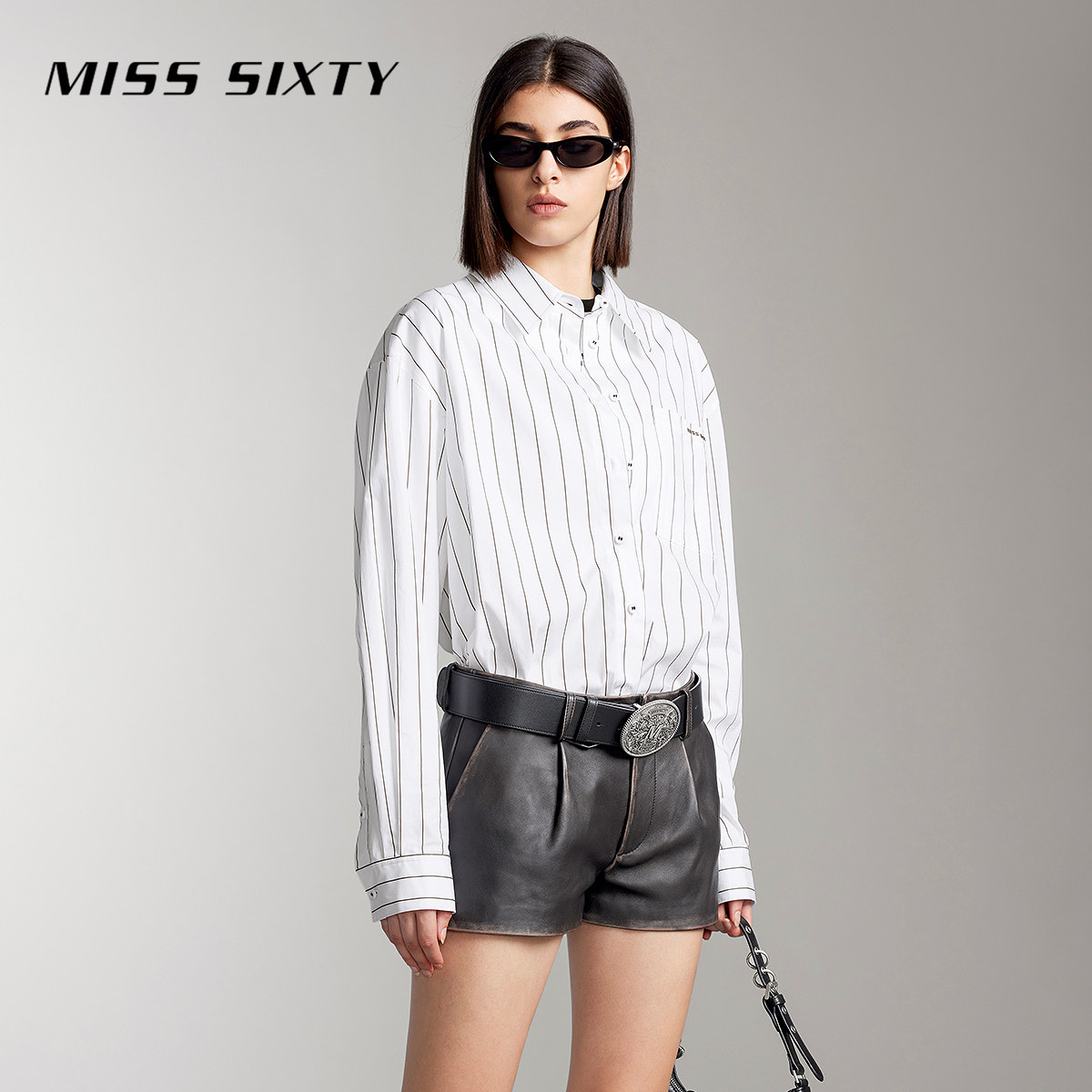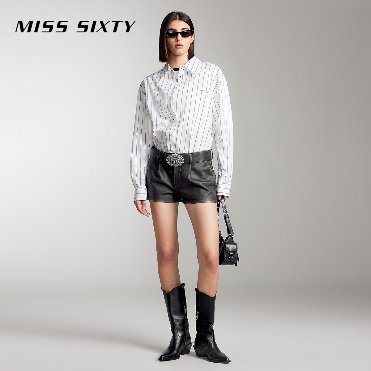 Miss Sixty休闲裤女简约时尚真皮短裤高腰直筒高级复古通勤显瘦