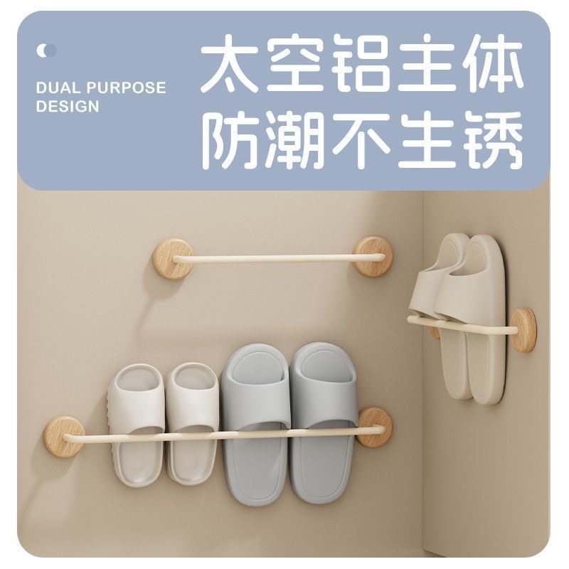 奶油风浴室拖鞋架免打孔卫生间鞋子收纳架壁挂门后沥水拖鞋置物架