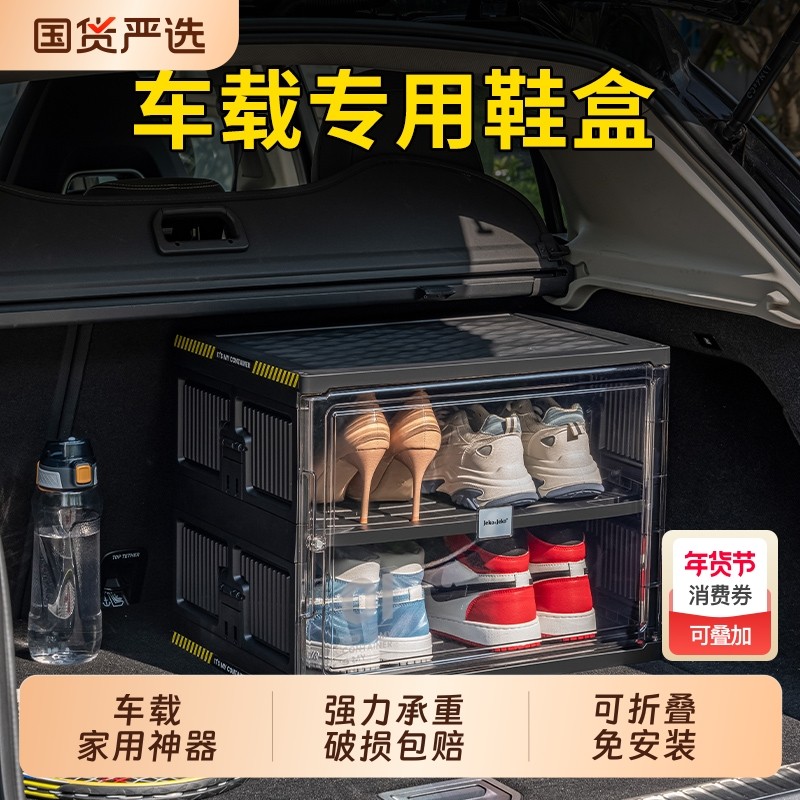 车载鞋盒后备箱鞋子收纳箱汽车透明鞋柜车尾箱鞋架折叠免安装神器