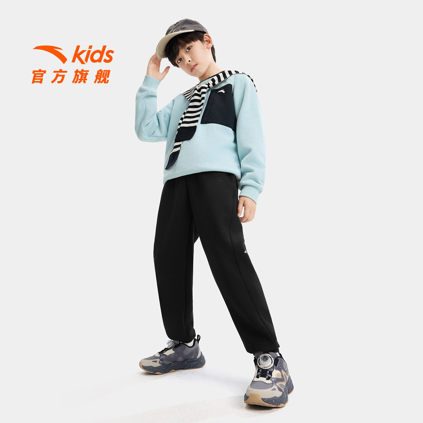 安踏儿童男女大童针织运动长裤2026年春季新款舒适中大童综训裤子