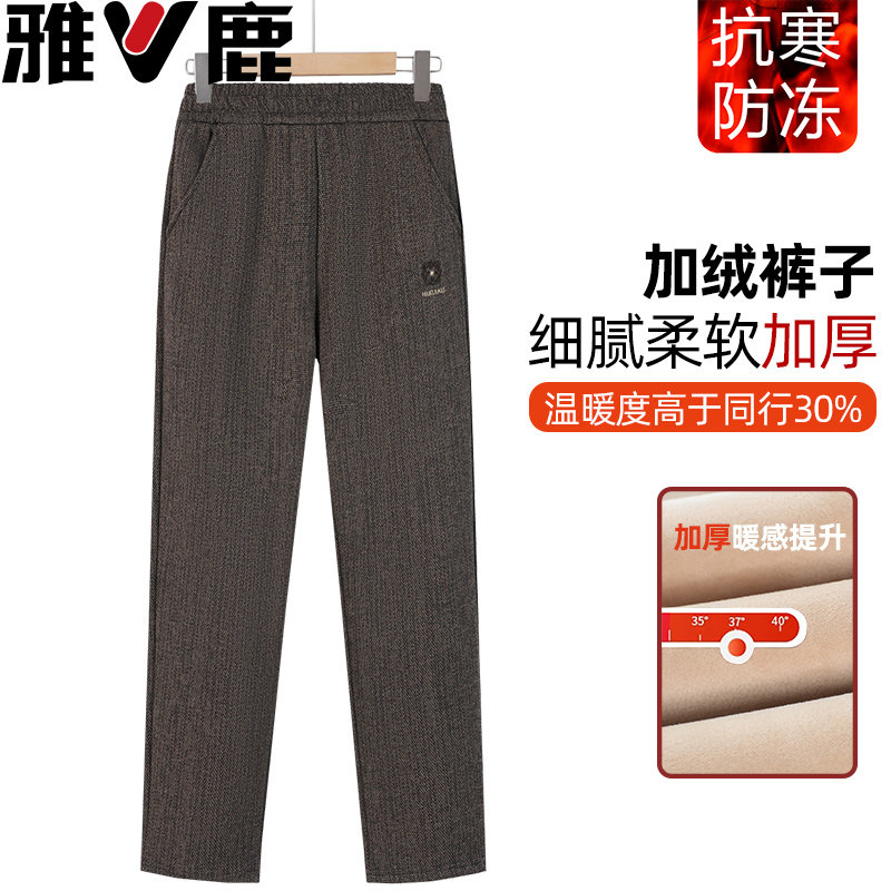 中年妈妈装冬季女裤加绒加厚直筒裤洋气显瘦中老年长裤弹力小个子