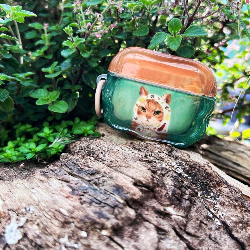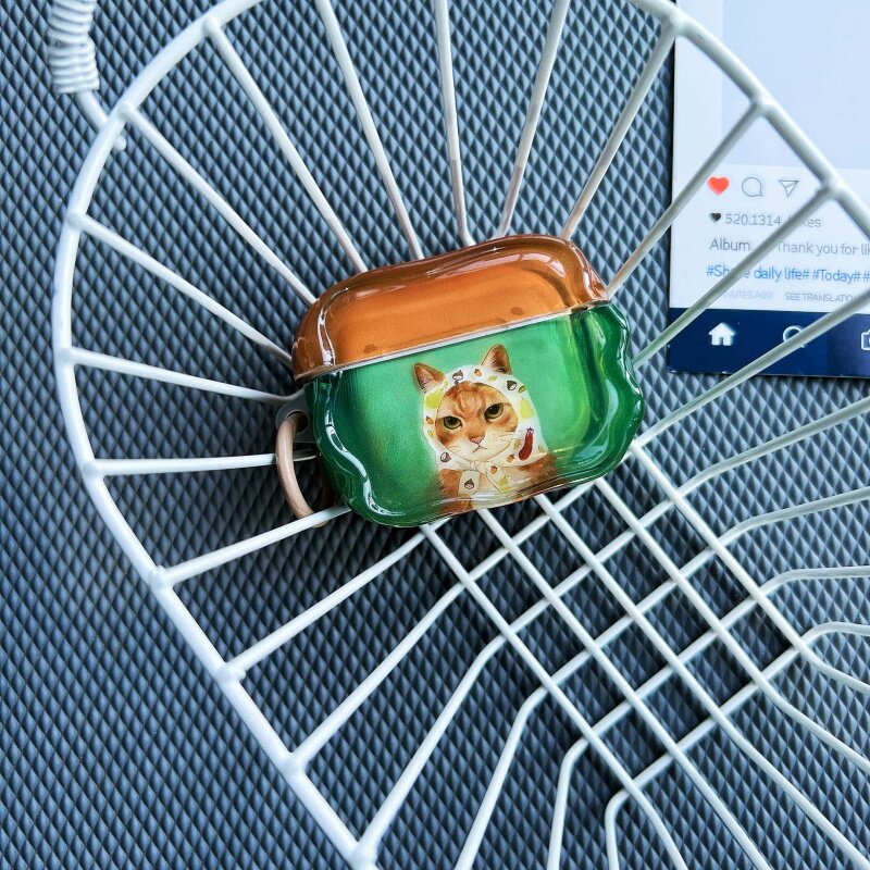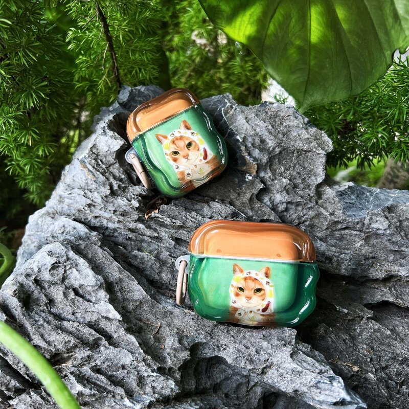 原创复古拼色可爱头巾小猫咪适用苹果AirPods Pro3半透明亮面保护套AirPods4代Pro2无线降噪蓝牙耳机软壳三四