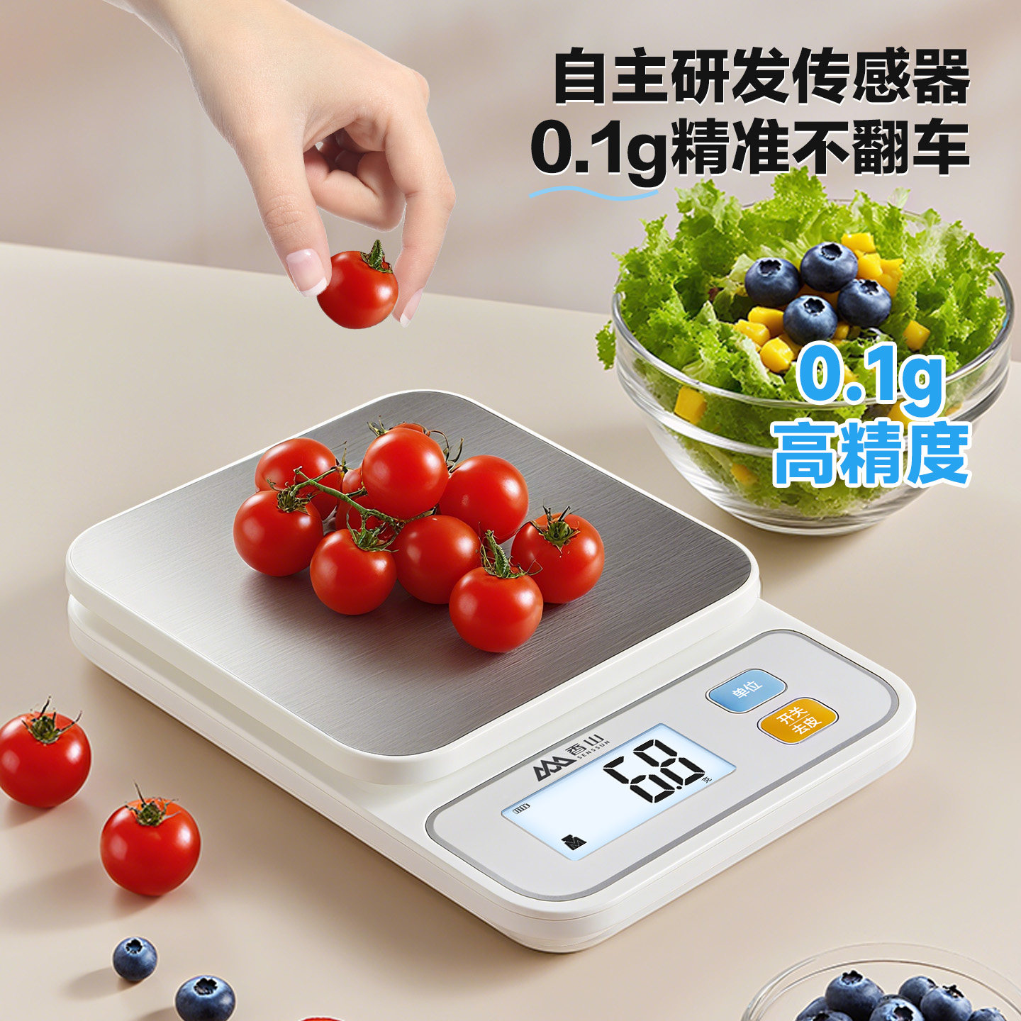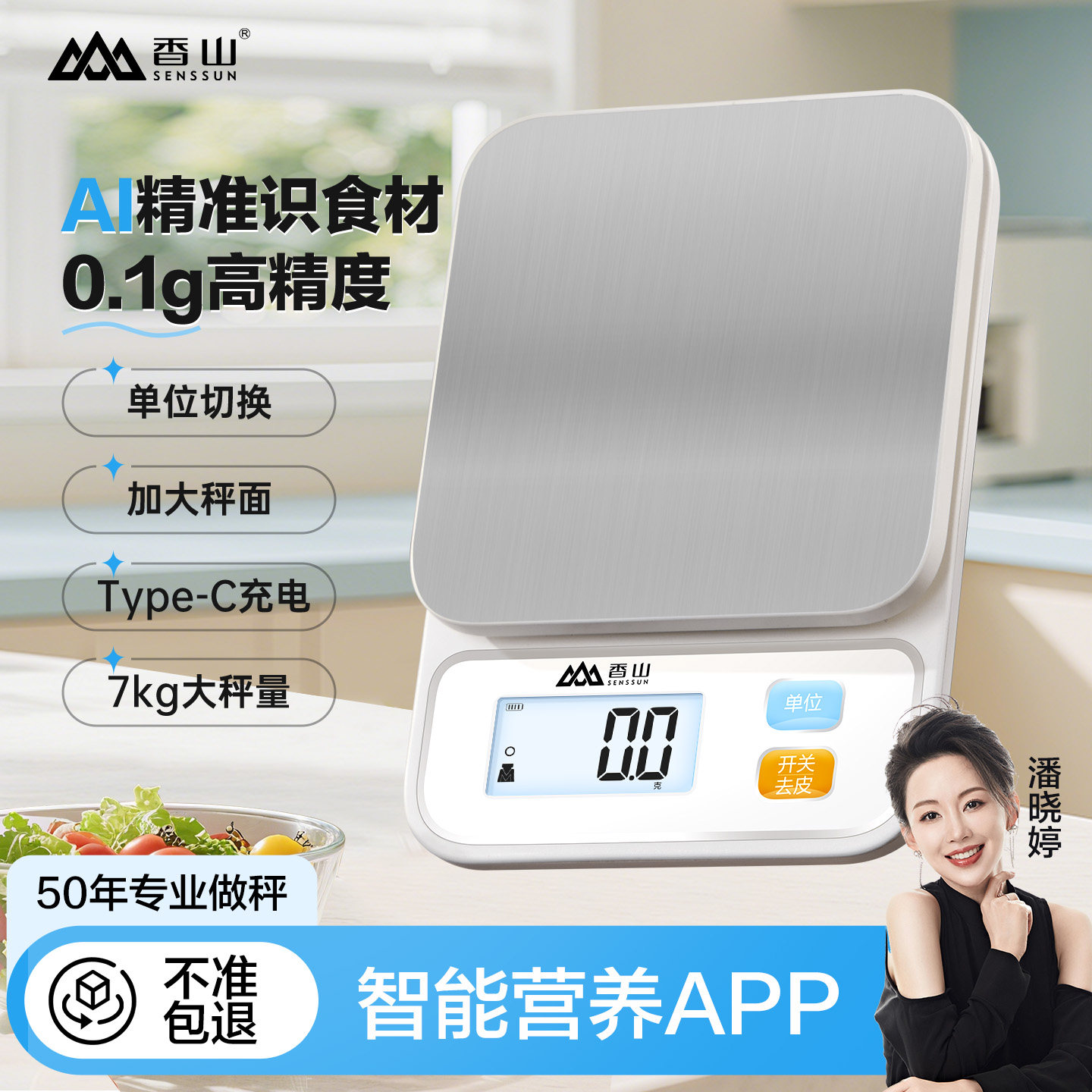香山营养秤精准厨房电子秤珠宝秤蓝牙APP食物秤家用烘焙克称称重