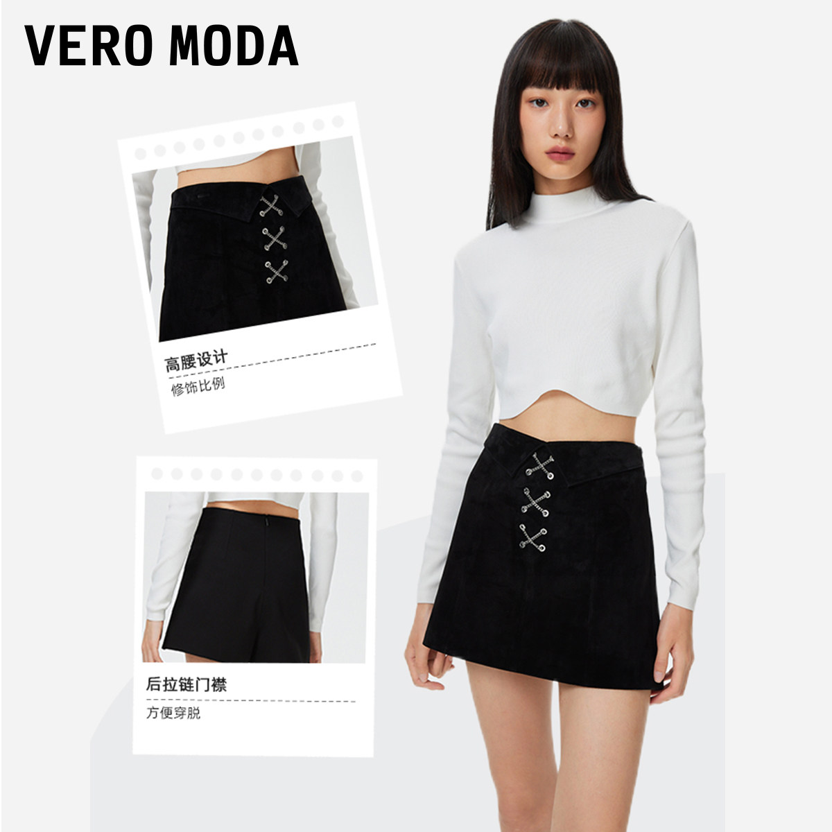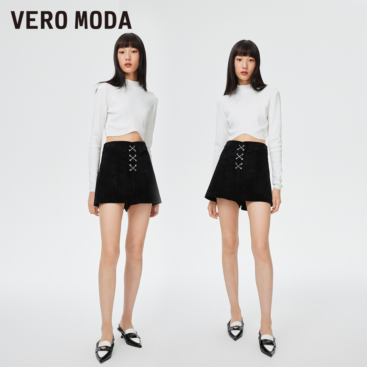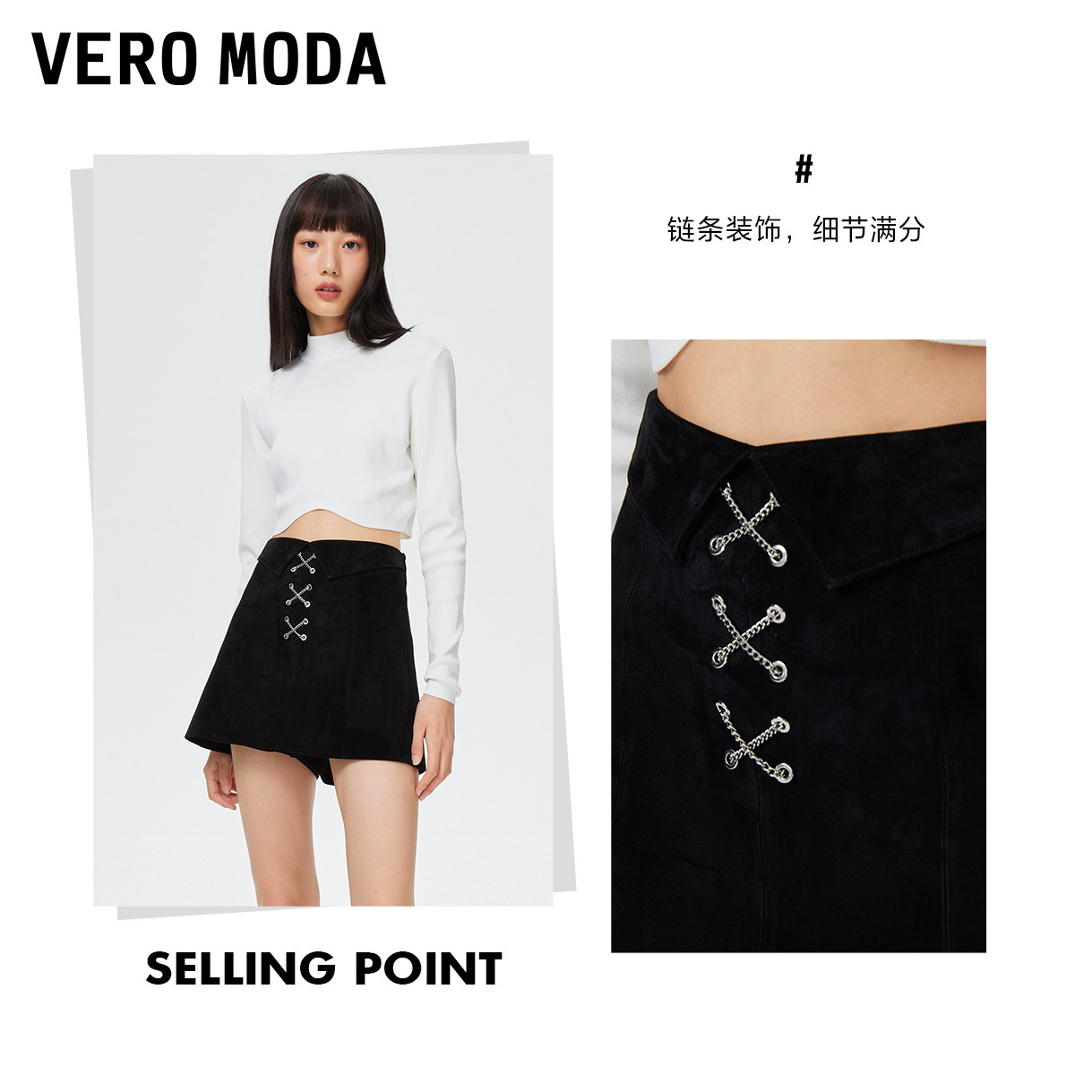 Vero Moda秋冬显瘦高腰链条猪剖层皮革裙裤短裤324311001