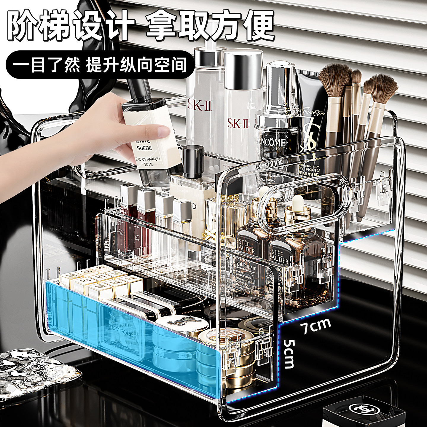 新款化妆品桌面收纳盒香水阶梯展示架阶梯式整理宿舍水乳玻璃