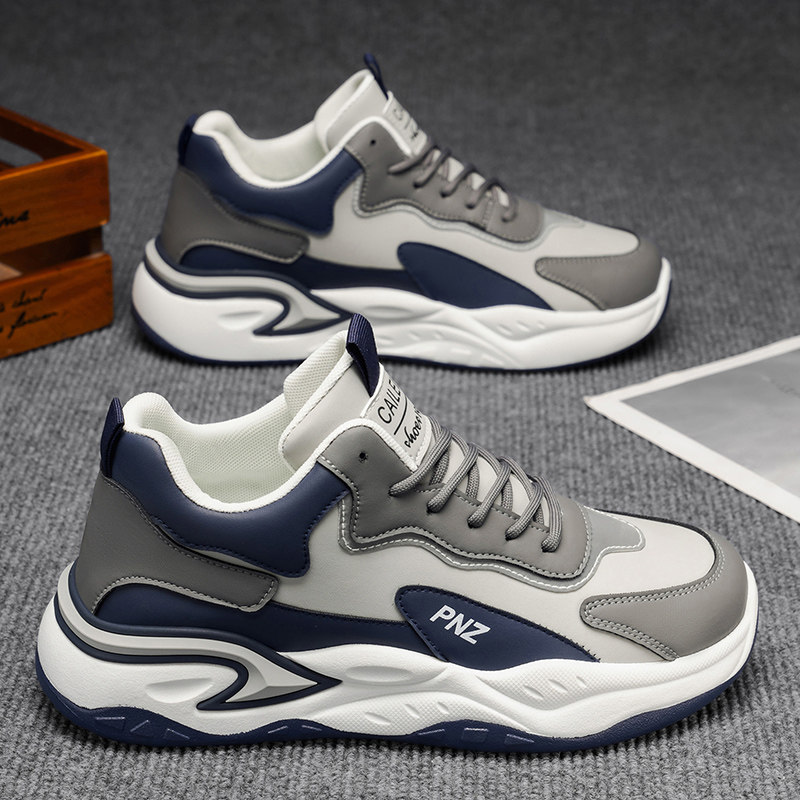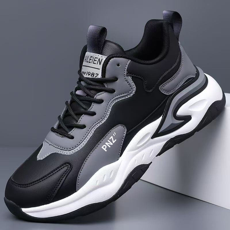男鞋春季2026新款休闲跑步运动鞋皮面防水防滑青少年潮鞋黑色潮流