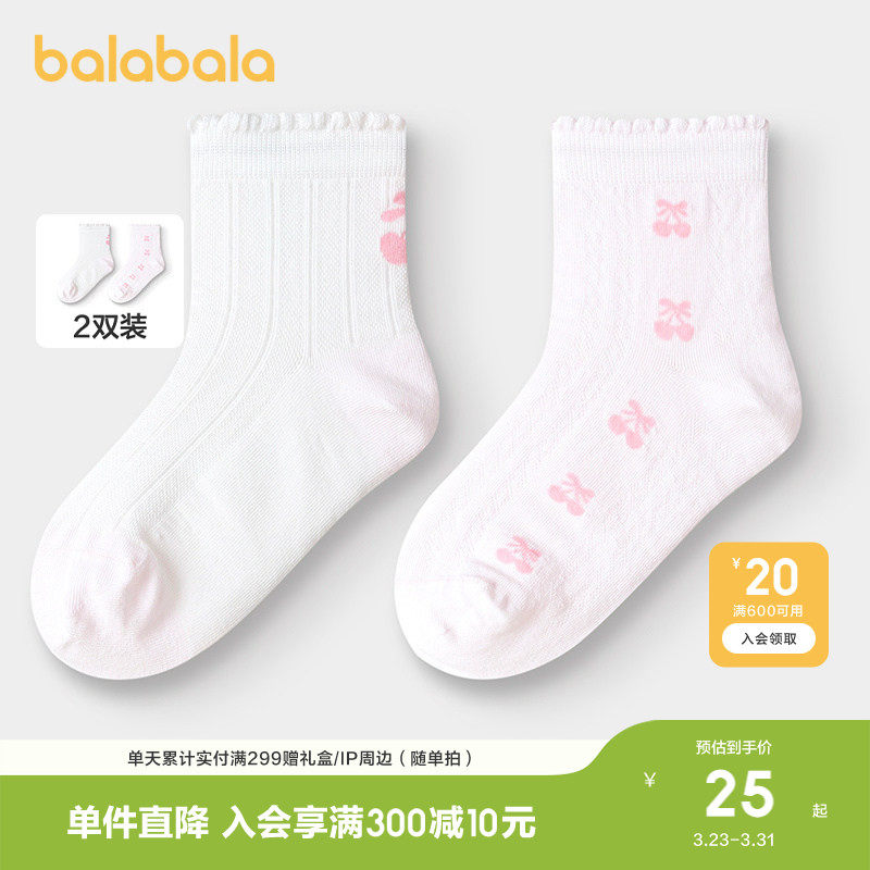 巴拉巴拉女童袜子儿童网眼袜夏季甜美袜桑蚕丝两双装