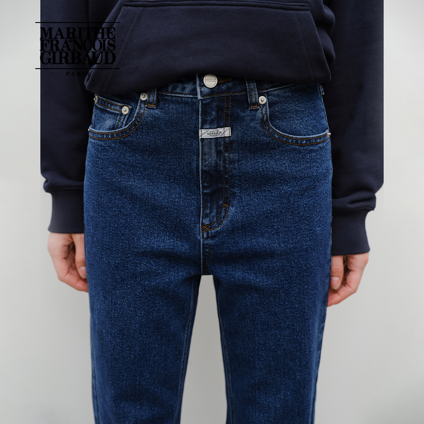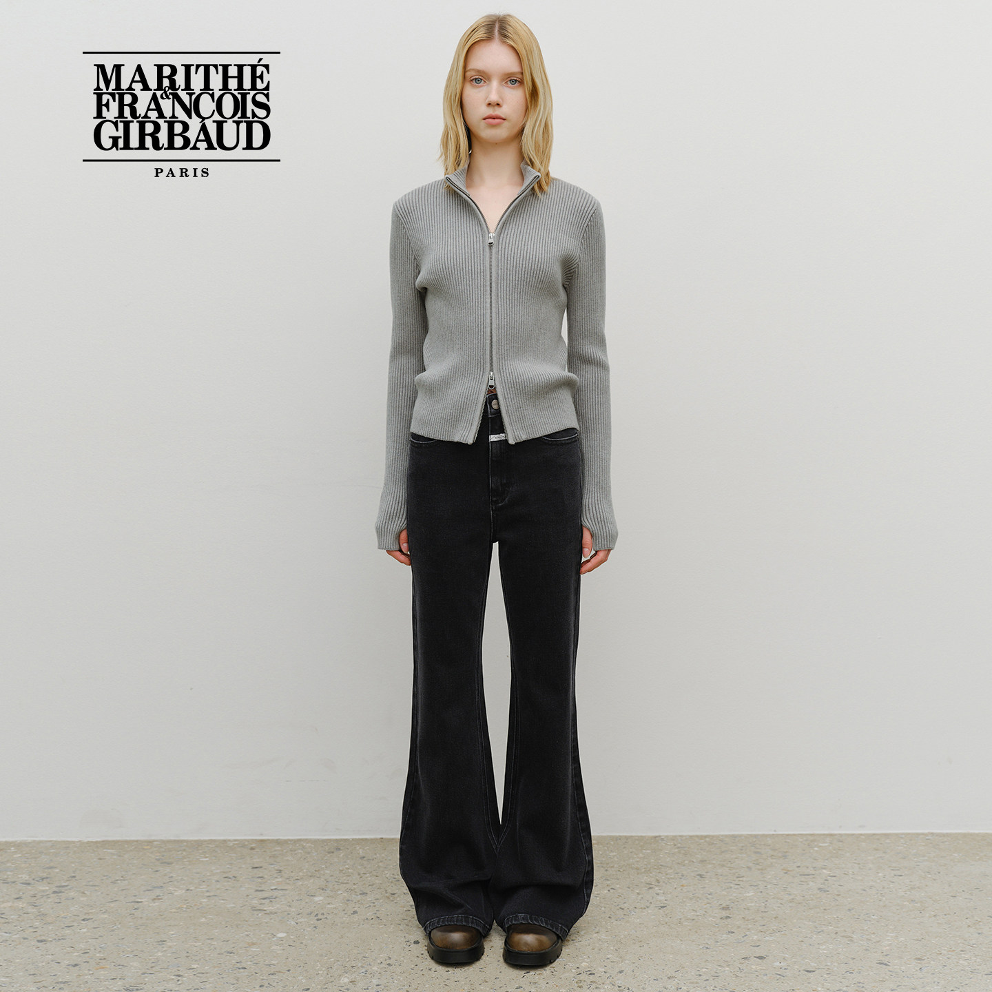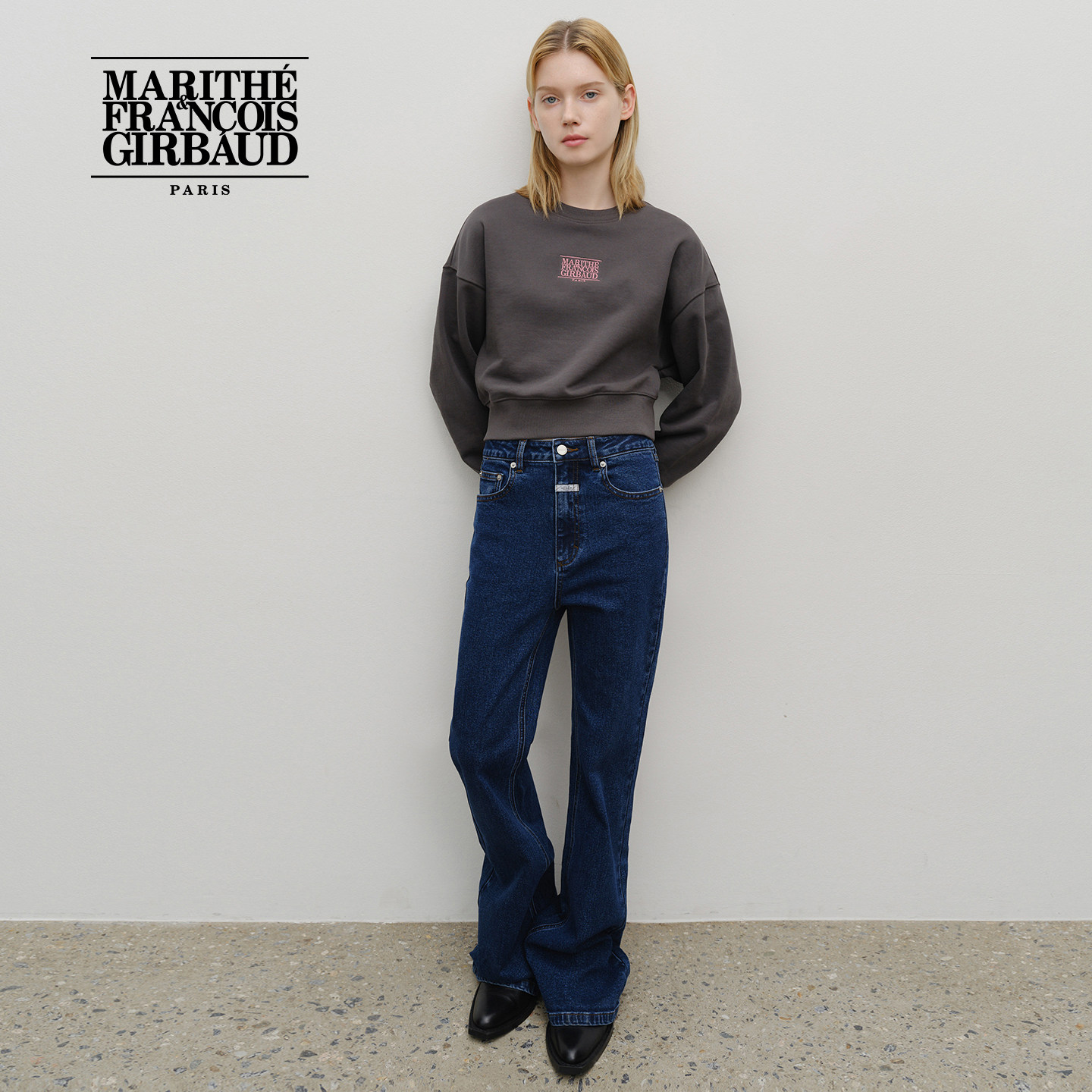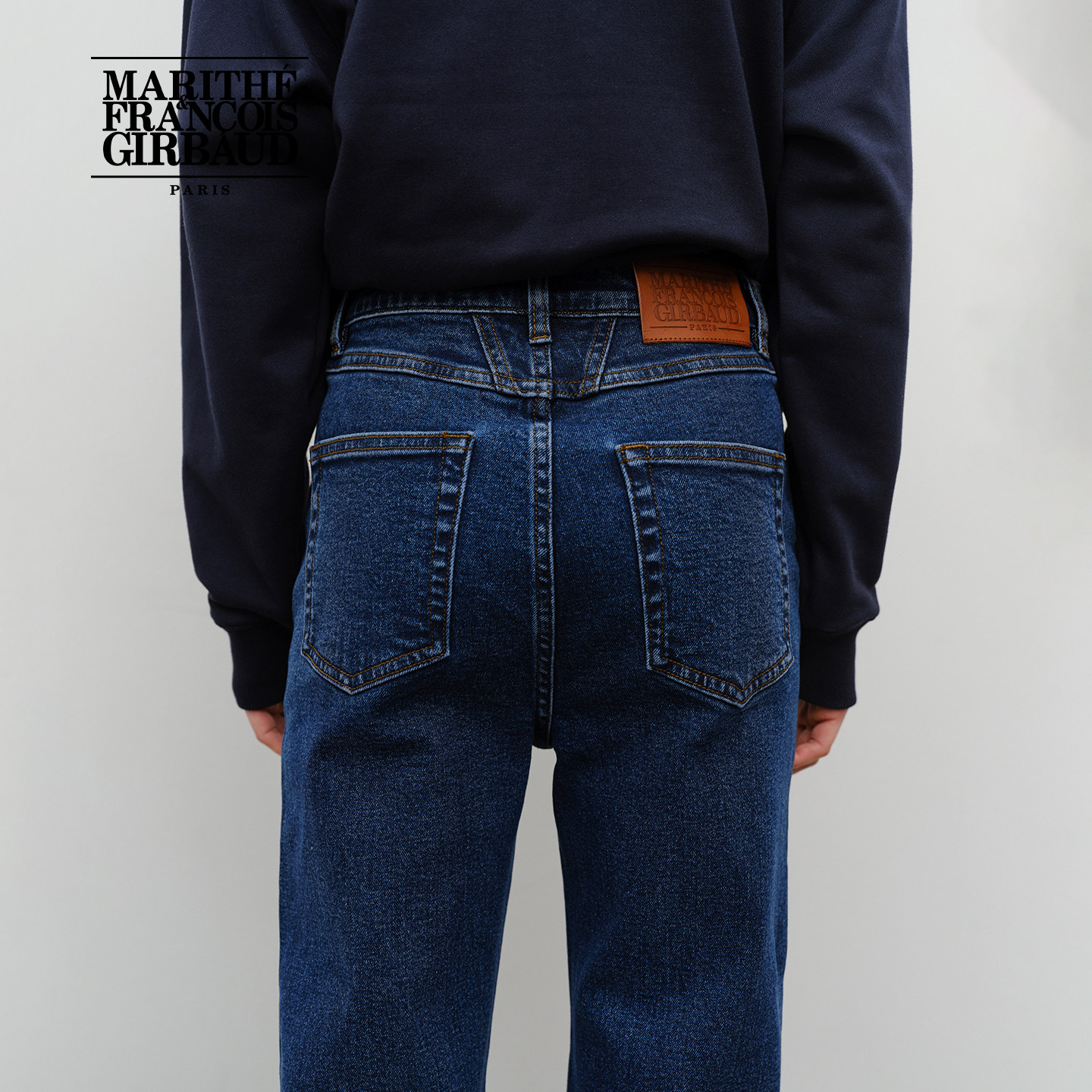 MARITHE女士高腰喇叭牛仔裤 直筒时尚复古水洗裤子2025年秋冬韩系